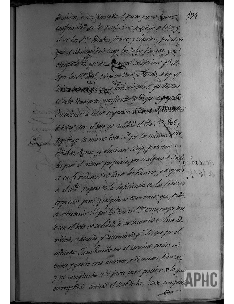 Se propuso por Juan Garrido, rematante del arrendamiento del Garapito, se aceptase como fianza por el importe del arrendamiento de 110 ducados y 5 reales, a los fiadores Juan y Josef Asiain y Miguel Jiménez, vecinos de esta Ciudad, siendo aceptada, en parte, su petición, pero obligándole a presentar más fianzas de las presentadas. En acuerdo del día 16 comunica que no puede incrementar dichas fianzas y se le mete en la cárcel y que se remita al Real y Supremo Consejo lo correspondiente a este arrendamiento para que provea lo más conveniente, permaneciendo Juan Garrido en la cárcel. También se trata sobre memorial presentado por el actual Alcalde D. Joaquín María Morales de Rada y Alonso, exponiendo que como poseedor del Palacio de Cabo de Armería de Rada, sito en la villa de Murillo el Fruto, está gozando de Rebate de Cuarteles, obtenido de la Cámara de Comptos que así lo declaró en juicio en 1787, como lo manifiestan los documentos que exhibe y tiene reconocidos anteriormente y suplica que por el Secretario de su Ayuntamiento se haga constar el correspondiente testimonio en el Libro de Acuerdos, para los efectos a que haya lugar, y para que en su caso, se le guarde dicha prerrogativa como a tal palaciano y sus sucesores en sus respectivos tiempos, conforme a las Leyes y Fueros de este Reino. Y en consecuencia, entre los documentos presentados hay un Despacho de la Cámara de Comptos de este Reino, por el que aparece haber acudido ante dicho Tribunal, haciendo constar ser notoriamente noble, gozando de uno de los más señalados distintivos que en este Reino caracterizan a los que lo son, que es el asiento en sus Cortes Generales con voz y voto, de que no puede blasonar quien no tenga ejecutoria de su nobleza, habiendo concurrido en las celebradas en los años 1780 y 1781, por el Brazo Militar de los Caballeros, según lo hacía ver por la convocatoria y testimonio que exhibía, apareciendo ser el de Murillo de que era poseedor del Palacio de Cabo de Armería, como lo confirmaba la Real Merced del Rey Juan II, y otros documentos por los que aparecía ser dueño de dicho Palacio de Cabo de Armería de los Radas, sito en dicha villa de Murillo, por todo lo cual solicita los privilegios correspondientes.