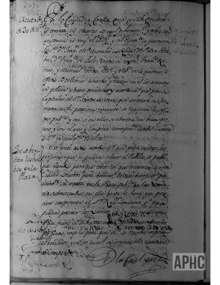 Se acordó que, todos los que trajeren huevos para su venta, la realicen en la Plaza pública de las Verduras, debiendo estar hasta la hora que pareciese conveniente al Regidos Semanero.