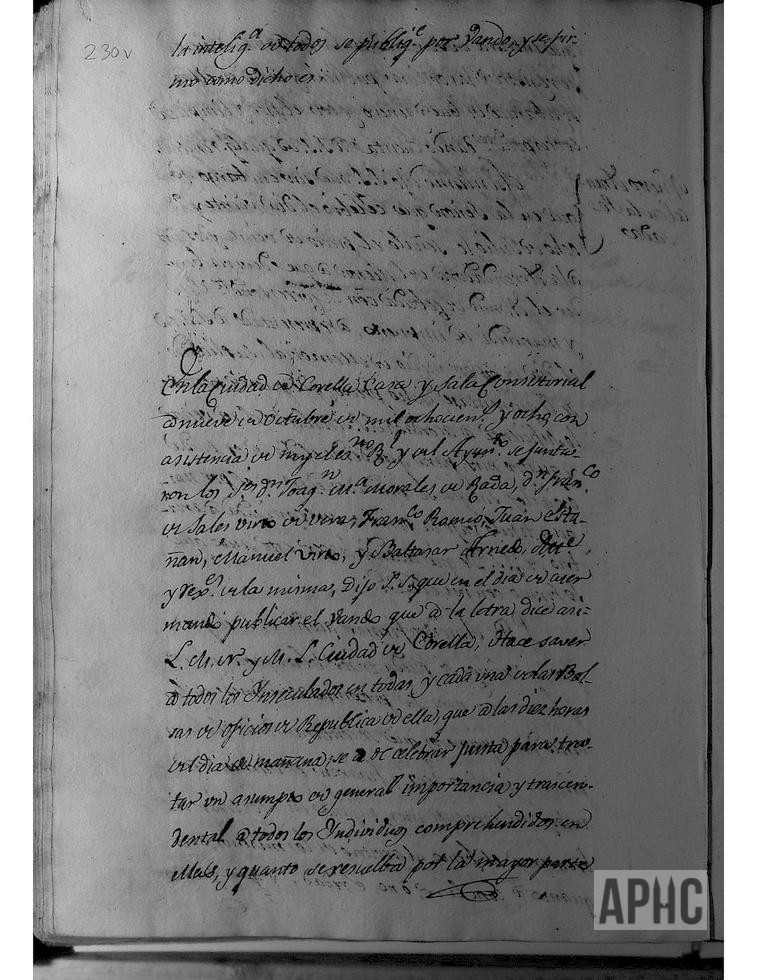 Por su originalidad, transcribo el acta de esta Sesión Municipal, cuyo texto dice así: “En la ciudad de Corella, Casa y Sala Consistorial, a 9 de Octubre de1808, con asistencia de mí el Escribano Real y del Ayuntamiento, se juntaron los señores D. Joaquín Mª Morales de Rada y Galdiano, D. Francisco de Sales Virto de Vera y Sesma, Francisco Romeo, Juan Estañán, Manuel Virto y Baltasar Arnedo, Alcalde y Regidores de la misma; Dijo su Señoría que en el día de ayer, mandó publicar el bando, que a la letra dice así: La Muy Noble y Leal Ciudad de Corella, hace saber a todos los insaculados en todas y cada una de los bolsas de Oficios de República de ella, que a las 10 horas del día de mañana, se ha de celebrar junta para tratar un asunto de general importancia y transcendental a todos los individuos comprendidos en ellas, y cuanto se resuelva por la mayor parte de los concurrentes ha de causar su efecto, o perjuicio, aun para los no concurrentes. Y para que llegue a noticias de todos y nadie alegue ignorancia, se manda publicar por banco, en Corella a 8 de Octubre de 1808. Con su acuerdo, Esteban Josef Jiménez de Ascárate, escribano”. Entiendo que al convocar a todos los incluidos en las Bolsas de Insaculación, que podían ser elegidos para los cargos de Alcalde, de Justicia o de Regidores, para un asunto tan importante y transcendental que no se cita, debe ser para tratar algo relativo a la situación del Ayuntamiento ante la ocupación del ejército francés y para tomar alguna medida a nivel de cargos públicos. En la sesión del día 26 de Agosto ya se indica que el ejército Francés está a tres leguas de distancia, de modo que sus avanzadas llegan hasta esta Población. Puede ser que el Ayuntamiento se disolviese y no se ocuparon cargos públicos o estos desaparecieron para no colaborar con los invasores, lo que puede motivar que no figuren actas sesiones municipales del año 1809. Confío encontrar una explicación. A continuación de este escrito, hay dos folios en blanco y la siguiente sesión que consta es la de 11 de Febrero de 1810.