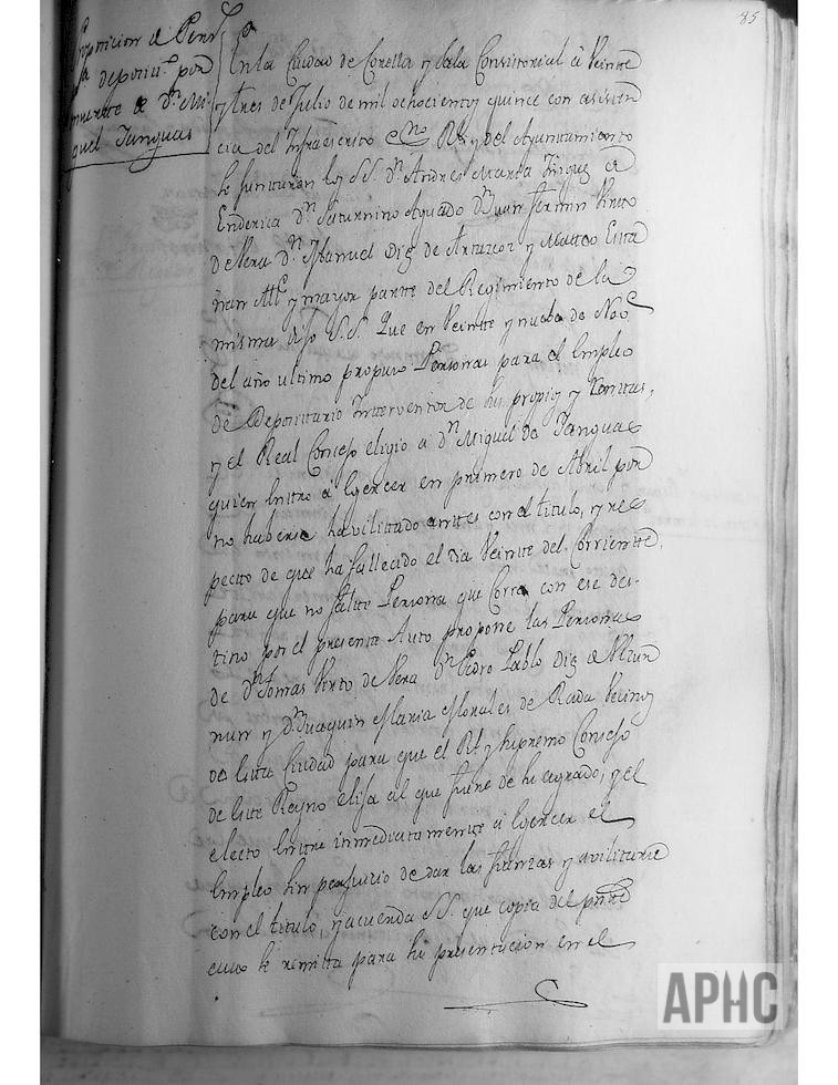 1815-07-23 – (Fallecimiento del Depositario Miguel de Yanguas. Repartidores de las tienda de Exmercería. Presidencia Juntas de Regadío).