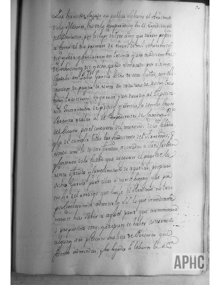 Se informa de que el arriendo del Mesón, se adjudicó en pública subasta a Pablo García, por un periodo de 3 años, con comienzo el 1 de enero de 1816 y final el 31 de Diciembre de 1818, debiendo pagar de renta cada uno de dichos tres años la cantidad de 351 ducados al Depositario Interventor de propios y rentas y 160 reales al de expedientes de Caminos Reales del Reino, por el impuesto del maravedí de la cebada. Considerándose insuficiente los avales presentados y no pudiendo presentar lo requerido, se dispone que dicho Pablo García quede arrestado en prisión hasta remitir al Real Consejo lo oportuno y entendiendo que el asunto sufrirá demora, parece adecuado sacar nuevamente a subasta en candela dicho arriendo.