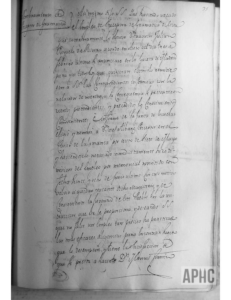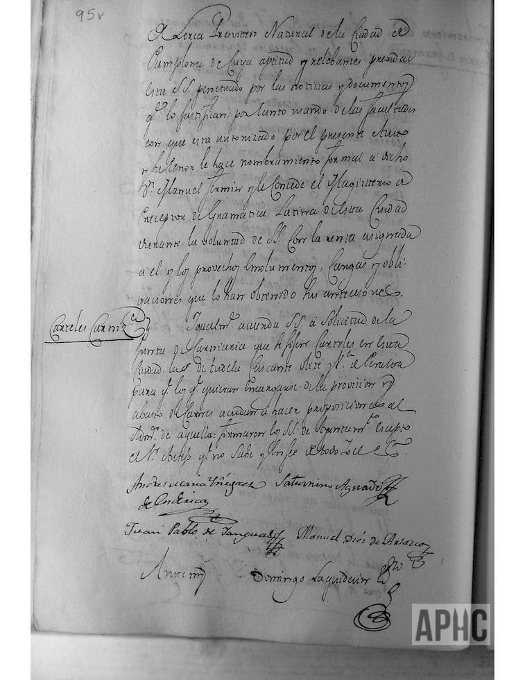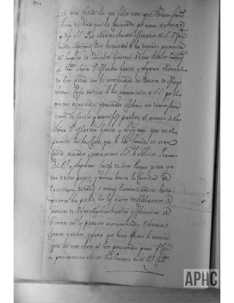 Se informa de que por el rey Fernando VII se ha promovido al empleo de Teniente General de sus Reales Ejércitos al Excmo. Sr. D. Martín García y Loygorri, natural de esta Ciudad, con fecha de 30 de Mayo último, cuya noticia se ha comunicado al Sr. Alcalde por el interesado, y deseando celebrar este nombramiento, se acuerda solicitar permiso al Real y Supremo Consejo, para que puedan gastarse de sus propios y rentas, hasta la cantidad de 300 ducados, economizándose lo posible, para celebración de función de iglesia, luminarias y colocación de vítores en los lugares acostumbrados. Igualmente, se informa de que estando vacante el empleo de Preceptor de Gramática, que interinamente obtuvo Joaquín Julián Puyuelo de Rivera, y que en el oportuno concurso se nombró a Josef Álvarez, preceptor en el Casar de Salamanca, que se excusó y no aceptó dicho cargo; por las consideraciones que en este acuerdo se expresan, se acuerda nombrar a Manuel Fermín de Lorca, presbítero, natural de Pamplona, para el Magisterio de Preceptor de Gramática Latina.