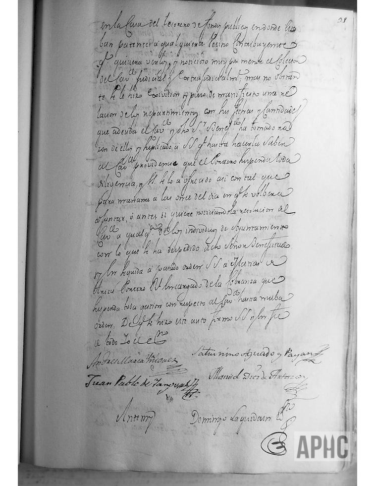 Se juntaron miembros del Ayuntamiento a solicitud de Josef Martínez Magallón, beneficiado comisionado por al Cabildo Eclesiástico, para que se le informase sobre los repartimientos que se les exigían, de qué épocas, a cuánto ascendían y porqué se le habían impuesto, alegando ignorancia, a lo que se le contestó que el Cabildo no podía alegar ignorancia por la cantidad de bandos, oficios y diligencias que se habían practicado y que aun cuando el Cabildo lo ignorase, ninguno de sus individuos como particulares debía ignorarlo, y respecto a cantidades y demás detalles, debían acudir a casa del Tesorero de fondos públicos en donde estaban como las de cualquier vecino contribuyente, mas no obstante se le puso de manifiesto una relación de los requerimientos, con sus fechas y cantidades y se quedó en que comunicaría estos requerimientos al Cabildo y que daría razón en dos días, solicitando la suspensión de la gestión de la cobranza, como así se acordó, pasando orden a Matías de Ariza Portero Real Encargado de la Cobranza. Entre los días 15 al 24 de Septiembre se desarrollan unas reuniones y oficios entre el Ayuntamiento y el Vicario General. El Ayuntamiento exige dicha deuda y el Vicario General envía un escrito amenazando con la excomunión y penas pecuniarias a los intervinientes. El Ayuntamiento ordena el embargo de 350 robos de trigo del existente en el granero del Cabildo Eclesiástico para cobro de las deudas exigidas, y que se depositen en Ángel Serrano, hasta que el asunto sea contestado por el Real y Supremo Consejo de este Reino.