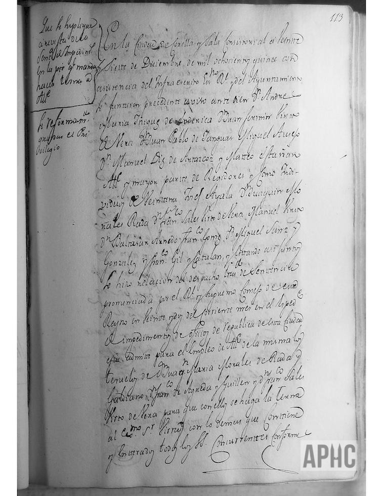 Reunidos, con asistencia del infrascrito escribano real y del Ayuntamiento, los señores D. Andrés María Iñiguez de Enderica, D. Juan Fermín Virto de Vera, D. Juan Pablo de Yanguas, Miguel Ausejo, D. Manuel Díez de Artázcoz y Mateo Estañán, Alcalde y Regidores del Ayuntamiento y los miembros de Veintena, señores Josef Ayala, D. Joaquín Morales Rada, D. Francisco Sales Virto de Vera, Manuel Virto, D. Baltasar Arnedo, Francisco Gómez, D. Miguel Sanz González y Francisco Gil Catalán, se informó de un traslado de sentencia del Real y Supremo Consejo de este Reino, en 22 del corriente mes, en que admite, para el empleo de Alcalde los teruelos de D. Joaquín María Morales de Rada y Galdiano, D. Francisco de Ágreda Guillén y D. Francisco Sales Virto de Vera, para que con ellos se haga la terna al Excmo. Sr. Virrey con lo demás que contiene, y enterados todos los concurrentes, dijeron que teniendo Corella privilegios reales para que realizado el sorteo de la bolsa de Alcaldes, el primero sea Alcalde, el segundo Regidor Preeminente y el tercero Regidor Cabo, y por tanto nunca se ha remitido terna alguna al Sr. Virrey, sino la carta credencial suplicando el despacho del título a favor del primer sorteado para el cargo de Alcalde, se acuerda se suspenda lo ordenado en dicha sentencia, remitiendo la reclamación oportuna al Real Consejo, solicitando la observancia de los privilegios de esta Ciudad.