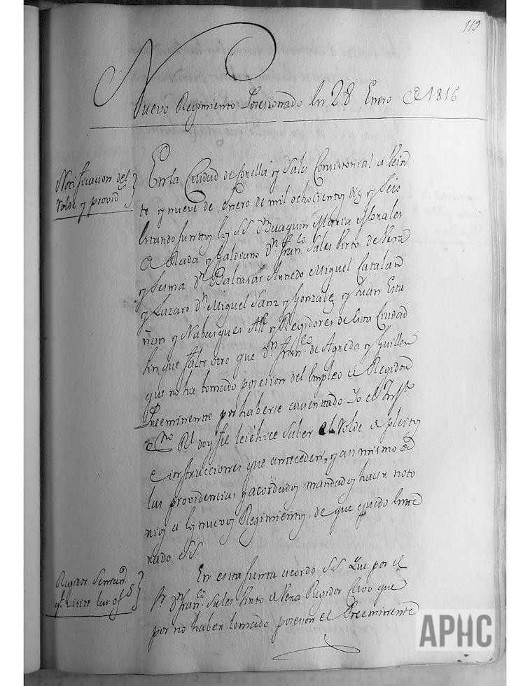 1816-01-29 – (Nuevo Regimiento posesionado en 28 de Enero de 1816).