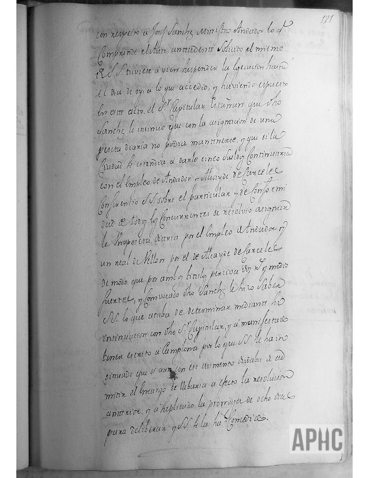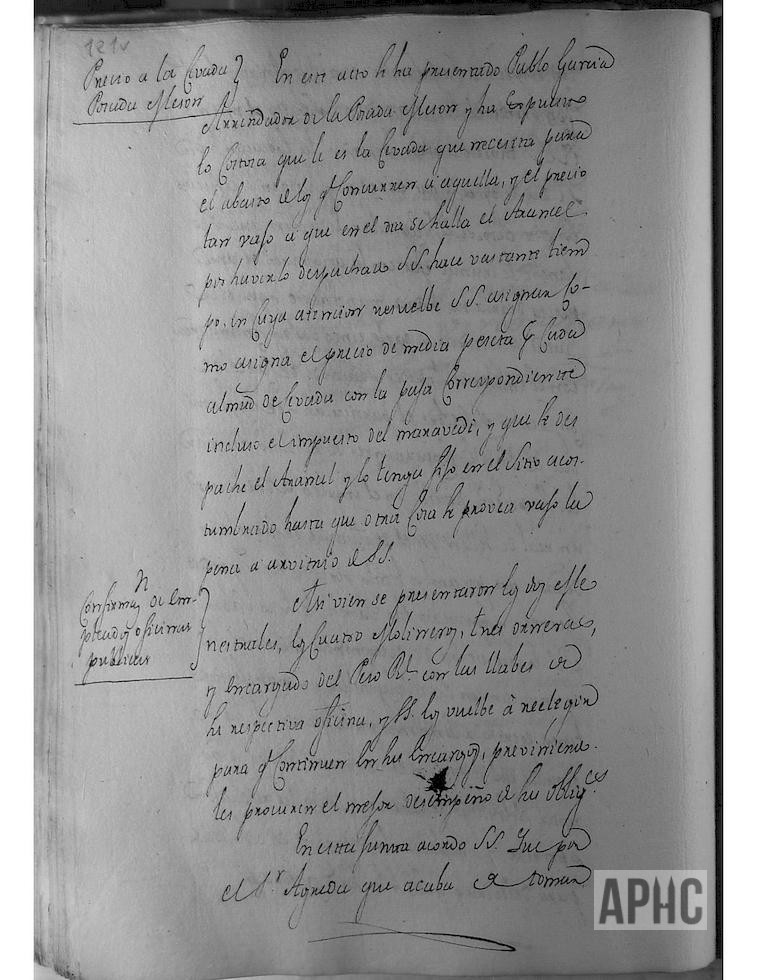 Por cuanto en la sesión anterior, se dejó en suspenso la designación de Ministro Andador y Alcalde de Cárceles de Josef Sánchez, por solicitar más salario al de una peseta diaria; por todo lo expuesto en este acuerdo, se accede a asignarle 1 peseta diaria por el empleo de Andador y 1 real de vellón por el de Alcaide de Cárceles, de modo que perciba 2 reales y medio fuertes. Se presenta Pablo García, arrendador del Mesón, sobre el precio de la cebada que se suministra en el Mesón y se fija el precio de media peseta por cada almud de cebada con la paja correspondiente, incluido el impuesto del maravedí. Se confirma en sus empleos de las oficinas públicas a los 2 Menestrales, los 4 Molineros, 3 Horneros y encargado del Peso Real.