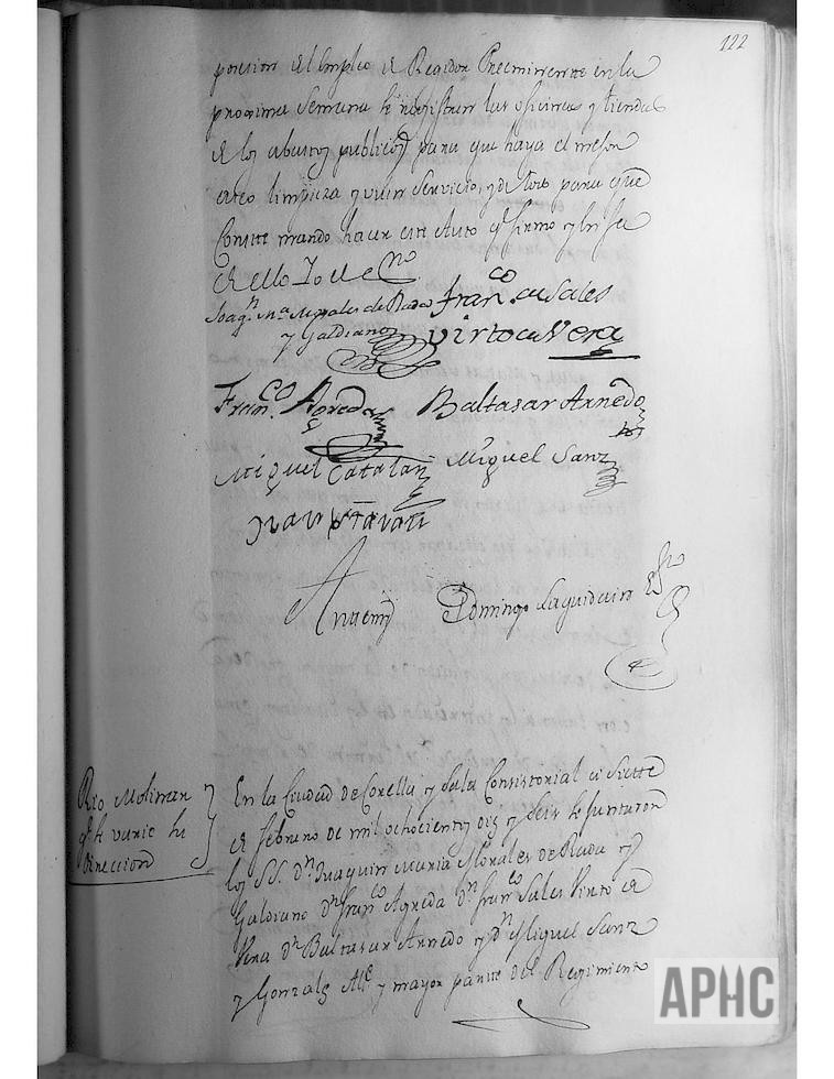 Se informa de que, por las últimas avenidas del río Alhama por la mucha nieve y lluvias que han ocurrido esos días, han causado bastantes daños en la llamada la Recueja de Ampol, de manera que el río Molinar ha quedado expuesto a un próximo rompimiento, se dispone que por Francisco Inesta, alcalde de aguas y Matías Sesma, regador del término, informan de que para evitar los graves perjuicios que se pueden originar, tanto en los Molinos como en las heredades del término de Ampol, debe variarse del río Molinar, con un nuevo cauce por el huerto que llaman de Juan de Cervera, propio del Cabildo Eclesiástico, tomando 5 ó 6 almudes de tierra (unos 300 m2), y en vista, se acuerda oficiar al Cabildo para que abonándole el importe tasado correspondiente, acceda y pueda realizarse dicho trabajo; respecto a los gastos, se considera oportuno que contribuyen los interesados en término de Ampol, la Ciudad, el Marquesado de Santacara, por lo que respecta a los molinos harineros.
