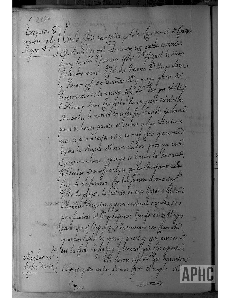 Entre otros asuntos, y por haberse eliminado en las últimas Cortes los cargos de Mudalafes, se nombra para el empleo de Referidores a Alejo Asiain, maestro carpintero, para cuanto ocurra de este oficio y Antonio Brieva, para todo lo relativo a hierro y otros metales.