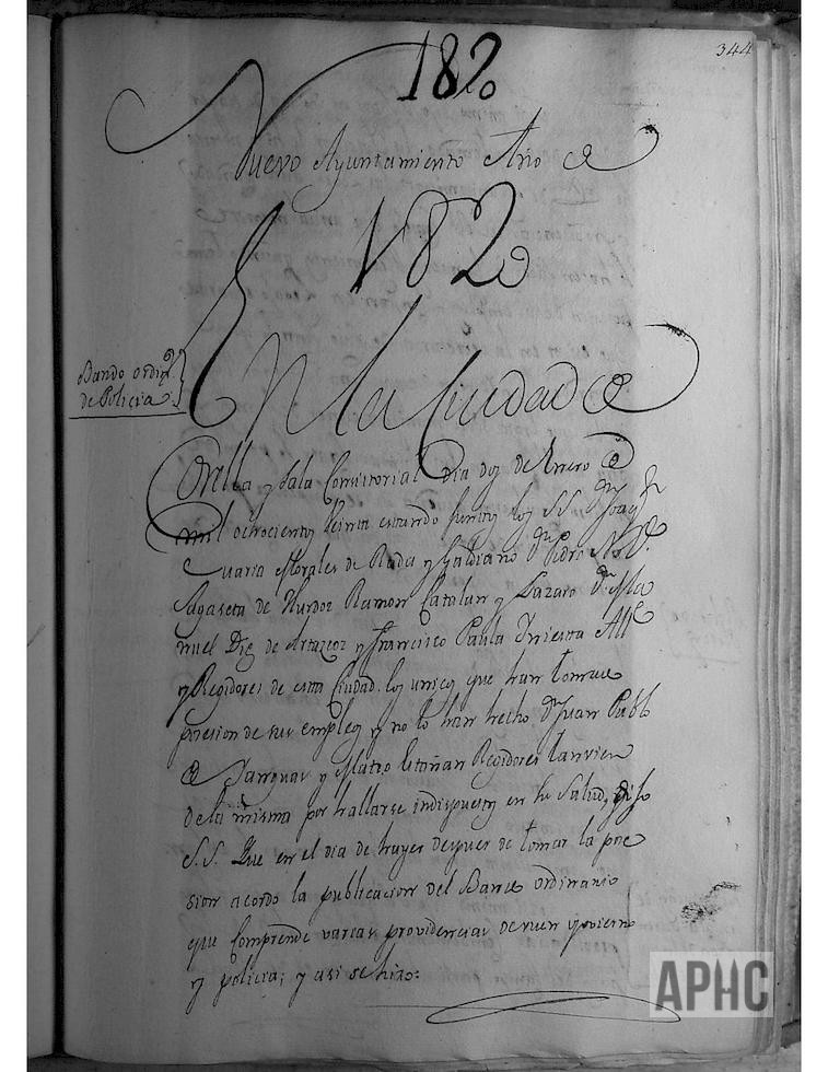 Estando juntos los señores D. Joaquín María Morales de Rada y Galdiano, D. Pedro Nolasco Sagaseta de Ilúrdoz, Ramón Catalán Lázaro, D. Manuel Díez de Artázcoz y Francisco Paula Iniesta, Alcalde y Regidores de esta Ciudad, los únicos que han tomado posesión de sus empleos y no lo han hecho D. Juan Pablo de Yanguas y Mateo Estañán, también Regidores de la misma por problemas de salud, y una vez tomada posesión, por el Escribano de Ayuntamiento, se les hizo notorias las leyes, autos y providencias del Real Consejo que anualmente se hacen saber a los nuevos Regimientos, así como el rolde de pleitos formado por el Regimiento anterior, y se toma n los acuerdos y decisiones propias de esta primera sesión en cuanto a cargos que afectan a Regidores, siendo reelegidos los Alamines y Regadores actuales.