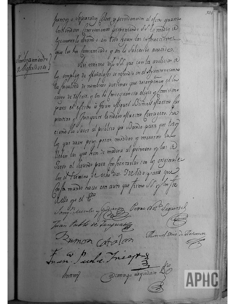 Se nombra para referidores a Juan Miguel Buñuel, maestro carpintero y a Joaquín Escudero, maestro cerrajero, haciéndolo saber por bando público para que todos los que usan pesos, pesas y medidas, si son de madera las lleven al primero y si son de hierro al segundo.
