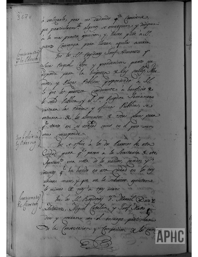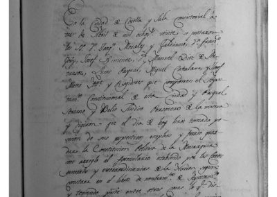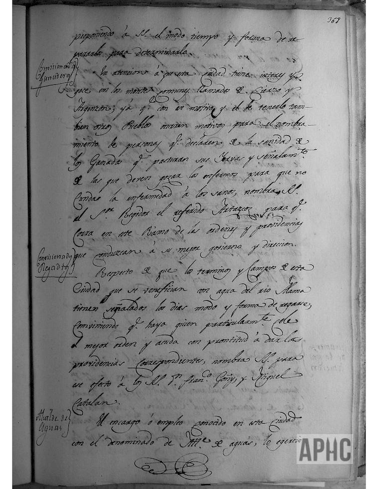 Se juntaron los señores D. Joaquín Morales y Galdiano, D. Francisco Goñi, José Jiménez Ibarra, D. Manuel Díez de Artázcoz, Lucas Pascual Garijo, Miguel Catalán y José Mateo Grávalos, Alcalde y Regidores que componen el Ayuntamiento Constitucional de esta Ciudad y Pascual Soriano y Belio, Síndico Personero de la misma, y han tomado posesión de sus empleos y jurado guardar la Constitución Política de la Monarquía y disponen que los Regidores José Jiménez y Lucas Pascual, asuman lo concerniente a la limpieza de calles, mercados y plazas públicas, disponiendo lo conveniente. Que se oficie a los dos Párrocos de la Ciudad, para que comuniquen a la Secretaría de este Ayuntamiento, nota de los nacidos, casados y muertos en los 3 últimos meses y que a partir de ahora lo comuniquen regularmente cada 3 meses. Que los Regidores Manuel Díez de Artázcoz, Miguel Catalán y José Mateo, asuman lo concerniente a la conservación y composición de los caminos. Que el Regidor Sr. Artázcoz, desempeñe lo concerniente a los aprovechamientos de los montes de Cierzo y Argenzón, sobre nombramiento de personas respecto a la sanidad de los ganados, aprovechamiento de hierbas y demás. Que los Regidores Francisco Goñi y Miguel Catalán, asuman lo concerniente a los riegos realizados a través del río Alhama.