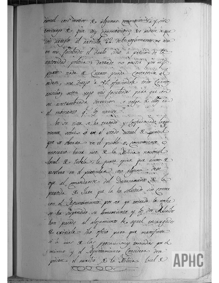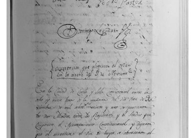 Se informa sobre las graves incidencias ocurridas en la noche del día 9, en las inmediaciones de la parroquia de San Miguel en la calle que dirige a la Carnicería (actual calle de San Juan), entre paisanos y 3 ó 4 soldados del destacamento del Regimiento de Jaén, con intervención posterior de la Milicia Local, con motivo de las luchas anticonstitucionales, motivando diversas disposiciones tanto relativas a la tropa como a la Milicia Local y a los vecinos de esta Ciudad.