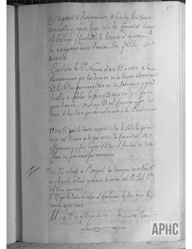 Se acuerda la realización de rogativas, traslado de las imágenes de la Virgen del Villar y la de Araceli, procesión con el Crucificado de San Miguel y otras ceremonias religiosas, celebradas en ambas Parroquias, en solicitud de agua para los campos. (Es la primera ocasión en que observo se menciona correctamente a los PP. Mercedarios, ya que anteriormente se citaban como “Mercenarios”).