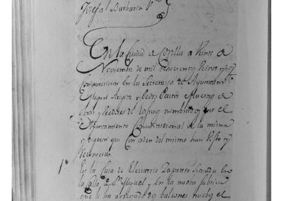 Comparecieron en la Secretaría del Ayuntamiento Miguel Arigita y Pedro Pastor, maestros de obras y veedores de edificios, nombrados por el Ayuntamiento y dijeron que, por orden del Ayuntamiento han visto y reconocido: 1º. En la casa de Eleuterio Zapatero, situada en la calle de San Miguel y en la nueva fábrica que le ha agregado 2 balcones nuevos, una en el 1º piso y otro en el 2º. 2º. En otra casa inmediata a la de Manuel Gil Ibarra, situada en la Plaza de la Constitución que afronta a la Iglesia, otros 2 balcones en el 1º y 2º piso. 3º.En la que ha construido de nueva planta Josefa Barbarin, viuda, junto al Puente de Cañete, 4 balcones, 2 en el frontis principal y otros 2 en el costado que cae al río. Todos los han encontrado bien asentados y con la seguridad y altura correspondiente con lo declarado, cumpliendo con la normativa.