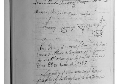 A petición de la Cofradía del Santo Cristo de la Columna, fundada en la iglesia parroquial de Ntra. Sra. del Rosario, se autoriza el pintado del retablo de dicho Santo Cristo, en la citada Parroquia, a expensas de dicha Cofradía. Hay una nota que indica: “Este libro y el anterior, se remitió a la Intendencia de Policía de Pamplona, para cumplir con una Real Orden y no los devolvió hasta el día 25 de Enero de 1825. Los autos que ocurrieron en el tiempo que ha estado en Pamplona, se extendieron en papel suelto”.