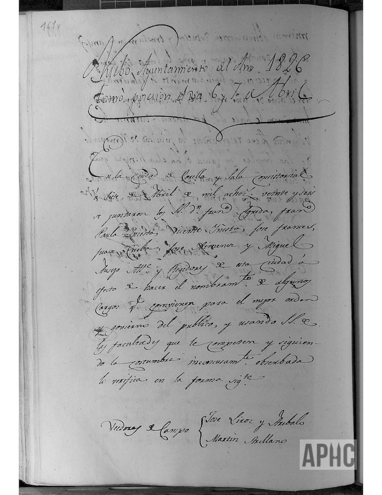 Nuevo Ayuntamiento del año 1826, tomó posesión el día 6 y 7 de Abril.