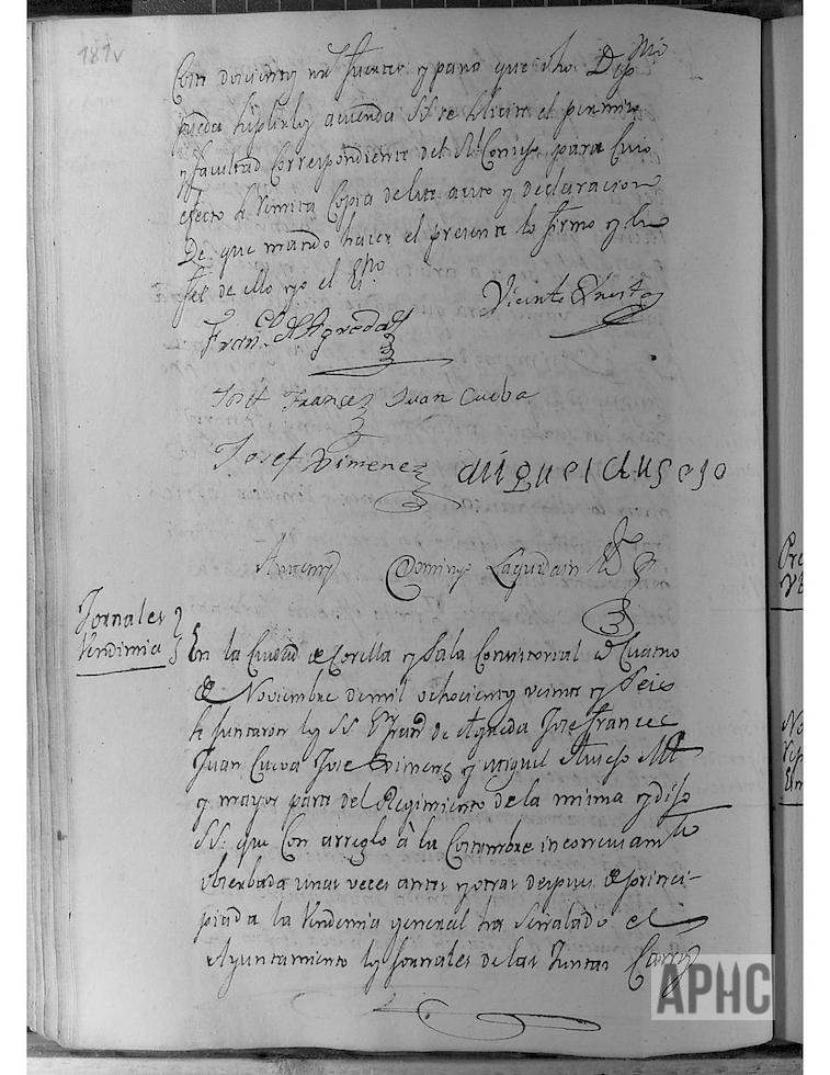 Se acordaron los precios de jornales de la vendimia, en la forma siguiente: Por cada carro con dos mulas, 8 reales fuertes y 1 robo de cebada, diarios. Por la yunta de caballerías mayores, 5 reales fuertes y un robo de cebada. Por cada yunta de caballerías menores, 2 reales y medio fuertes y medio robo de cebada. Por el jornal diario a los sobrestantes o hacedores 2 reales fuertes. A los peones o cortadores del Pueblo 1 real y medio fuertes y a los forasteros 1 real fuerte, y a todos la costa acostumbrada. Asimismo, se señala el precio de 8 pesetas por cada carga de uvas que tenga el peso de 10 arrobas (133,920 Kg.). Para hacer el reparto y distribución de la cantidad de 85 ducados con que contribuyen anualmente los comerciantes de esta Ciudad, por el arriendo de las tiendas de exmercería, para el presente año, se nombra a Pascual Soriano, José Aycega, Francisco Viscasillas y Roque Echeverría. Se comisiona a su Capitular José Jiménez, para que pase a la Junta de Bardenas y presente los Monteros, para cuyo efecto se le otorgue el correspondiente poder.