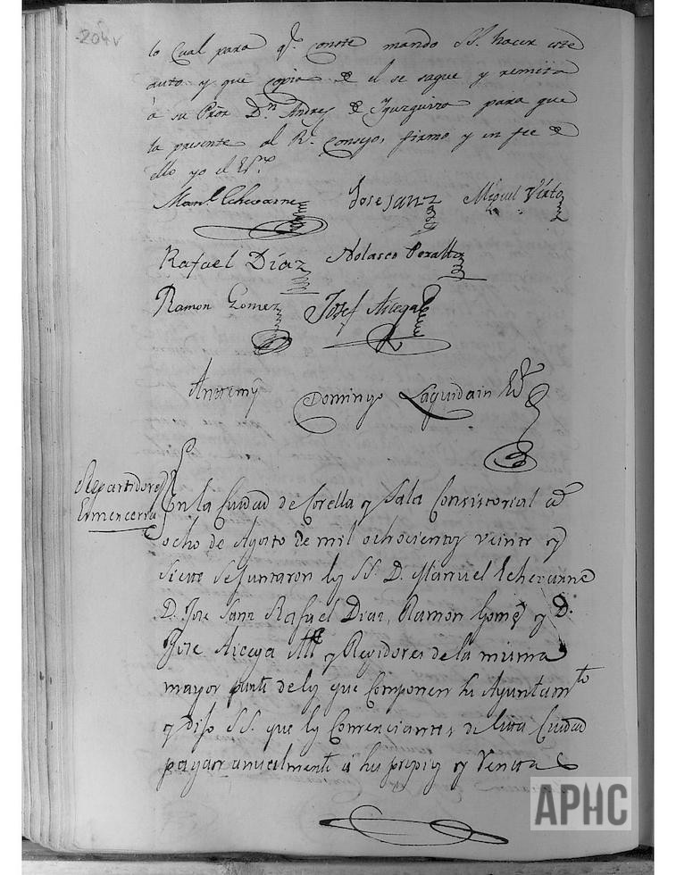 Para hacer el reparto y distribución de la cantidad de 85 ducados con que contribuyen anualmente los comerciantes de esta Ciudad, por el arriendo de las tiendas de exmercería, para el presente año, se nombra a Lucas Pascual Garijo, Pascual Soriano, Serafín Sagasti y José Salamero.