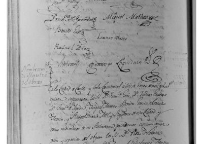 Reunidos los señores D. Francisco Goñi, D. Isidoro Escudero, D. Francisco de Ágreda, Miguel Mateo Grávalos, Benito García, Lorenzo Mateo Arriaga y Rafael Díaz, Alcalde y Regidores de la Ciudad y los individuos de Veintena D. Pedro Nolasco Sagaseta, José Aicega, D. Manuel Echevarne, Mateo Estañán, Manuel Sánchez, Pedro Regalado Catalán, José María Librada, D. José Sanz Romeo, Joaquín Arellano Galarreta y Ramón Gómez, se expuso que, según la Ley 25, aprobada por las Cortes de este Reino, en los años 1828 y 1829, dispone que las obras municipales que excedan de 20 duros, no puedan ejecutarse por los Ayuntamientos, sin que conste la necesidad o utilidad, por declaración jurada del Maestro de Obras, que el Ayuntamiento y su Junta de Veintena nombrarán a principios de año, y se nombra a Antonio García Arrieta, Maestro Albañil, vecino de esta Ciudad.