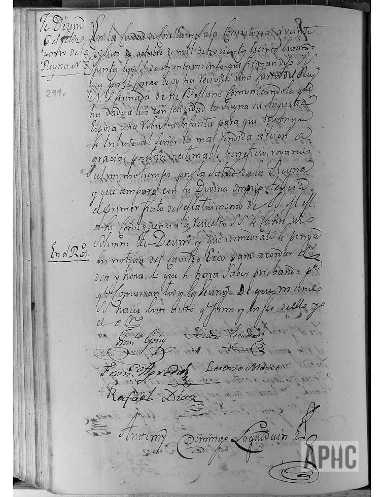 Se informa de carta recibida sobre el parto feliz de la Reina que dio a luz a una “robusta infanta”, disponiéndose la celebración de un Te Deum y ceremonia religiosa de acción de gracias.