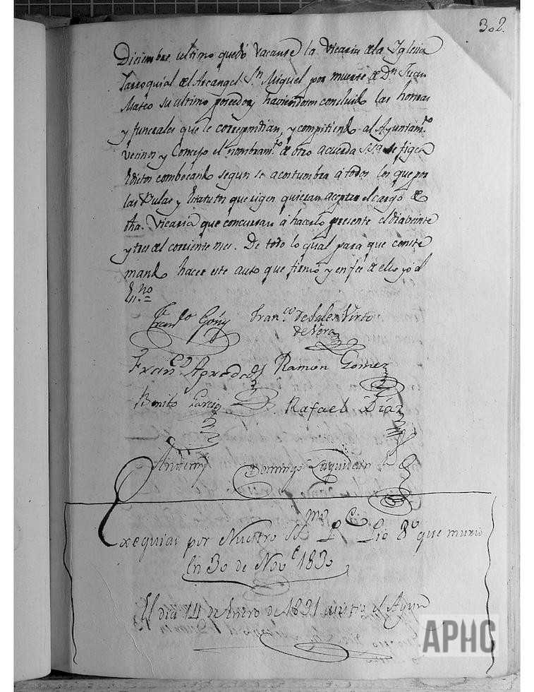 Se hace constancia de las exequias por la muerte del Papa Pío VIII, que falleció el día 30 de Noviembre de 1830, celebradas en la iglesia de San Miguel. (Se indica que fue elegido otro Papa, que tomó el nombre de Gregorio XVI).