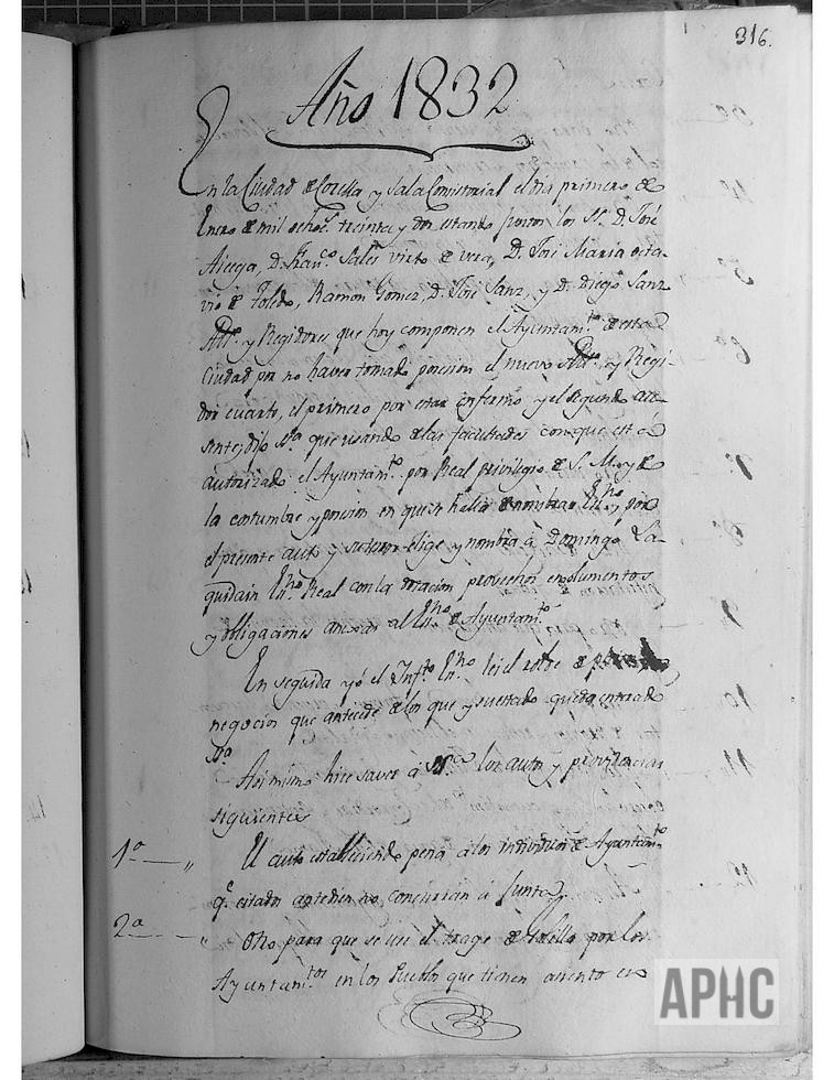 Estando juntos los señores D. José Aicega, D. Francisco Sales Virto de Vera, D. José María Octavio de Toledo, Ramón Gómez, D. José Sanz mayor y D. Diego Sanz Romeo, Alcalde y Regidores que hoy componen el Ayuntamiento de esta Ciudad, por no haber tomado posesión el nuevo Alcalde y Regidor 4º (parece que son José de Sesma Sanjuán, Alcalde y Manuel Catalán, Regidor 4º), el primero por estar enfermo y el segundo ausente, dijo su Señoría que, usando de las facultades con que está autorizado el Ayuntamiento por Real privilegio de S. M., se nombra Escribano a Domingo Laquidain, Escribano Real, con la dotación, provechos y obligaciones anexas al Escribano de Ayuntamiento. Seguidamente, el Escribano lee el rolde de pleitos y negocios que antecede quedando enterada su Señoría. Asimismo hace saber los autos y providencias correspondientes, en número de 12, quedando enterados de los mismos.
