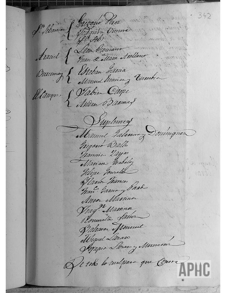Estando juntos los señores D. Manuel Echevarne y Virto, Pascual Soriano, D. José Mª Octavio de Toledo, Anselmo Peralta y Mateo Estañán y D. Diego Sanz, Alcalde y Regidores de esta Ciudad, con arreglo a la costumbre para provisión de Canicleros entre los recién casados para el empleo de Canicleros, y según las listas facilitadas por los señores Párrocos, han salido elegidos los siguientes: Fugenique, Joaquín Rodríguez y Andrés Jiménez; Socañete, Isidoro Funes y Aymilar, Valentín Salcedo , Antonio Malumbres Marzo y Ramón Martínez; San Juan, Eusebio Lázaro y Santiago Goya; San Sebastián, Gregorio Pérez y Joaquín Vicente; Araciel, León Romano y Juan de Mata Arellano; Burcemay, Esteban García y Manuel Estañán Torruvia; El Campo, Javier Caspe y Andrés Barenas ; Suplentes, Manuel Galarreta Domínguez, Gregorio Vallés, Francisco Zayas, Mariano Grávalos, Felipe González, Hilarión Francés, Francisco García Pardo, Antón Martínez, Romualdo Sanz, Baltasar Monreal, Miguel Lázaro y Serapio Lázaro Munárriz.