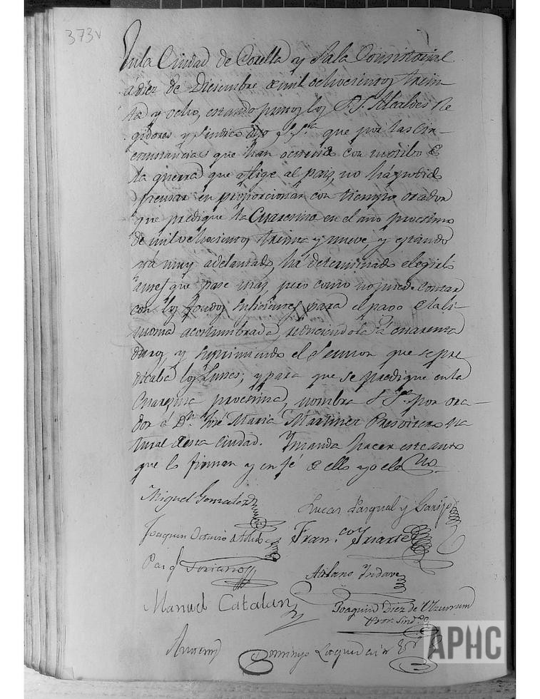 (Es el único Acuerdo que consta, relativo al año 1938). No se citan nombres de Alcalde, Regidores ni de Síndico, pero firman, al final de este acuerdo: Miguel González, Lucas Pascual y Garijo, Joaquín Octavio de Toledo, Francisco Iriarte, Pascual Soriano, Atilano Indave y Manuel Catalán y como Procurador Síndico Joaquín Díez de Ulzurrun, como escribano Domingo Laquidain.) En el acuerdo se indica que, por las circunstancias que han ocurrido por la guerra que aflige al País, (entiendo se refieren a la 1ª Guerra Carlista 1833 a 1839), no se había nombrado orador para la Cuaresma para el año 1839, y se nombra a D. José María Martínez, presbítero natural de esta Ciudad.