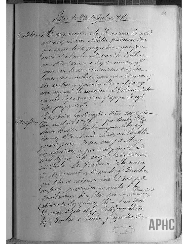 1842-07-23 – (Institución de Beneficiados Eclesiásticos de la Ciudad).