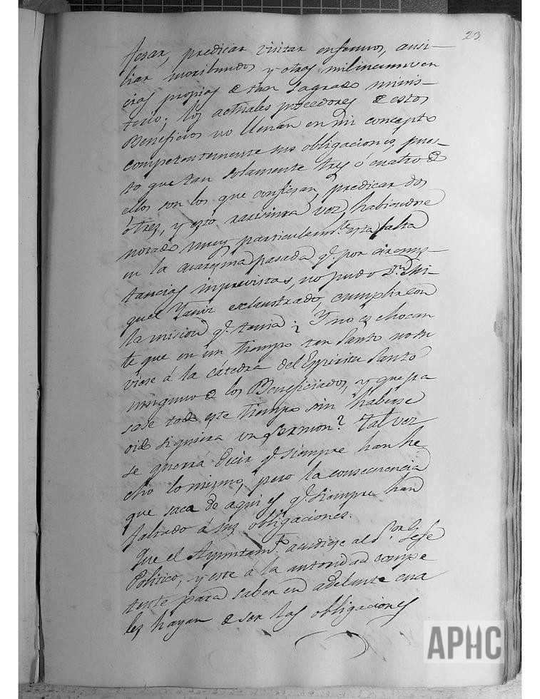 Se informa de la institución de los Beneficios Eclesiásticos (Sacerdotes), de esta Ciudad, por Bula del Papa Paulo III, sobre los diezmos de esta Ciudad, con la obligación precisa de que los agraciados, sean “curas de almas”. Se menciona la fundación del Convento de Mercedarios y el de Carmelitas Descalzos, que asumieron el trabajo de confesión, predicación y auxilio a moribundos, bien por la devoción de los vecinos o por celo de los Religiosos, resultando que los beneficios creados como curas de almas, vinieron a ser Beneficios simples. Se comenta que ha sido necesario recurrir a la suscripción para celebración de las misas de 11 y 12 de la mañana, en días festivos, fuera de las conventuales, así como las quejas de los ciudadanos sobre celebraciones religiosas. Según la Bula de los Papas Paulo III y Paulo V, cuando toman posesión los curas de Corella de los Beneficios, pasan a considerarse “curas de almas” y como tales están obligados a confesar, predicar, visitar enfermos, auxiliar a moribundos y otras funciones propias de tan sagrado ministerio, y son únicamente 3 ó 4 sacerdotes los que realizan dichas funciones. Por todo ello, se acuerda que el Ayuntamiento acuda al Jefe Político, para que la autoridad competente comunique las obligaciones de dichos sacerdotes, independientemente de las muchas quejas del vecindario, por la poca gratitud de los curas del Cabildo Eclesiástico hacia el vecindario de esta Ciudad, que tanto les ha aportado.