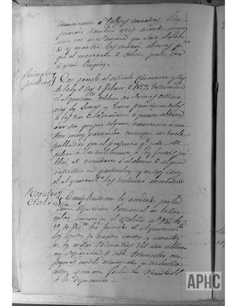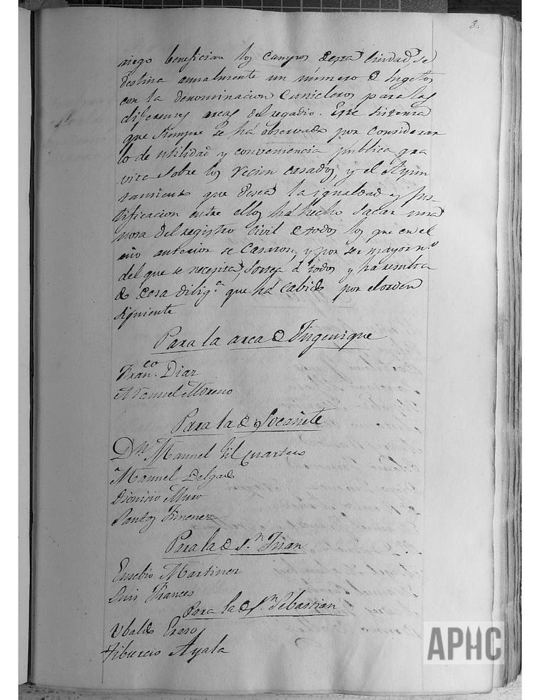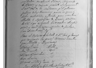 Reunidos los señores D. Donato Porlier, Marqués de Bajamar, D. Joaquín Octavio de Toledo, D. Francisco Goñi, Francisco Viscasillas, D. Manuel Lapeña, D. Luis Bisié, Anselmo Peralta, Claudio Díaz y D. Ignacio Ágreda (Procurador Síndico), alcaldes 1º y 2º y Regidores del Ayuntamiento de esta Ciudad, y realizaron los siguientes nombramientos: Veedores de Campo, José Jiménez Romano y Prudencio Mateo; Apreciadores de Hortaliza, Manuel Sánchez Virto e Irineo Mateo; Apreciadores de lo Seco, Francisco Arellano Sagaseta y Mateo Arellano Virto; Guardas de Montes de Cierzo, Nicasio Bienzobas, Ramón Navarro, Miguel López Botón, Benito Lázaro, Bernardo Capitán y Fausto Guillorme; Referidores, Joaquín Escudero y Mateo Gil; Maestro de Obras públicas y Veedor, Benito Arigita. Asimismo, teniendo presente que, para el mejor aprovechamiento de las aguas y su riego, se destina anualmente un número de sujetos con la denominación de Canicleros, para las diferentes arcas del regadío, que siempre han sido elegidos entre los recién casados y el Ayuntamiento, deseando la igualdad ha sacada una lista del Registro Civil de los que el año anterior se casaron, y realizado el sorteo, ha resultado el orden siguiente: Para el arca de Fugenique, Francisco Díaz y Manuel Moreno; para la de Socañete, Manuel Gil Cuartero, Manuel Delgado, Dionisio Muro y Santos Jiménez; para San Juan, Eusebio Martínez y Luis Francés; para la de San Sebastián, Ubaldo Eraso y Tiburcio Ayala; Pedro Veria y Dámaso Navarro; Burcemay, Antonio Bieva y Benigno Arnedo; El Campo, Gregorio Benito Sánchez y Diego Delgado; Suplentes, Benito Romeo, Felipe Izal, Bartolomé Jiménez, Santiago Alfaro, Hipólito Martínez, Antonio Pérez, Andrés Rández, Polonio Jiménez, Diego Jiménez Nagorí, Benito Arnedo, Manuel Francés Arellano, Donato Arnedo, Ángel Malumbres, Manuel Peralta, Andrés Guillén, Bruno Vallés, Leonardo Catalán y Pedro García. Por constitución de Ordenanzas establecidas en esta Ciudad, para la seguridad y tranquilidad de sus vecinos, se nombran anualmente Priores y Mayorales de Barrio, y teniendo presente el artículo 136 de la instrucción para el gobierno político de las provincias, se hace el nombramiento siguiente: Para el Distrito de la calle San José y demás que comprende la 1ª división, nombra para alcalde a Matías García, y ayudantes a León Grávalos, Nicasio Bienzobas, Juan Arriaga y Manuel Mateo Gómez. Por el Distrito de la Plaza de la Constitución y demás que comprende la 2ª división, a Julián Cazcarro, alcalde y para ayudantes a Florencio Belloso, Antonio Ayala, Sotero Arnedo y Juan Rodríguez. Por el Distrito de la Plaza de las Verduras y demás, que comprende la 3ª división, a Manuel Sánchez, alcalde y ayudantes a Baltasar Liroz, Eugenio Martínez y Cándido Romano. Para la Placeta de San Miguel y demás calles que comprende la 4ª división, a Tomás Arellano, alcalde y ayudantes a Manuel Learte y Rafael Romeo. Para el distrito de la calle de la Merced y demás que comprende la 5ª división, a Francisco Marcilla, alcalde y ayudantes a Ángel Gil y León Sesma. Se nombra para el cargo de Depositario a Hipólito Nieva. No habiendo interesados en la venta de pescado fresco y salado que antes se hacía por arriendo y se había dejado en absoluta libertad con el impuesto que el Ayuntamiento había establecido y no dudando que esta situación es debida a la cantidad que había que pagar mensualmente, se acuerda reducirla, por ahora, a sólo 40 reales mensuales, entre todos los que quieran dedicarse a esa venta. Respecto a que también se hacía por arrendamiento la venta de sal por menor, debe quedar también en libertad, se acuerda que los que se dediquen a su venta, paguen 20 reales mensuales. Se harán saber ambos acuerdos por el oportuno bando, y que acudan a suscribirse a casa del Depositario. Se ordena por bando que todos los vecinos limpien y barran las calles correspondientes a sus frontis los miércoles y los sábados de cada semana, quitando de las calles todos los estorbos que puedan impedir el libre tránsito. Los vecinos de callejas cerradas limpiarán estas una vez en semana que será en sábado, teniendo también ese día las callejas abiertas. Con arreglo al Artículo 53 de la ley de 3 de Febrero de 1823, se acuerda la celebración de las sesiones ordinarias los lunes y jueves a las 10 de la mañana. En cumplimiento de lo dispuesto por la Excma. Diputación Provincial, en lo concerniente al Registro Civil, este Ayuntamiento ha confeccionado los estados de nacidos, casados y fallecidos, en el pasado año, con información detallada por trimestres, elaborada en los impresos facilitados y que se han remitido a la Diputación. Se remite contestación a la Diputación, con copia de oficio del Ayuntamiento de Tudela, sobre alistamiento de Manuel Marcilla, para el reemplazo del Ejército, para que determine, en su vista, lo que proceda.