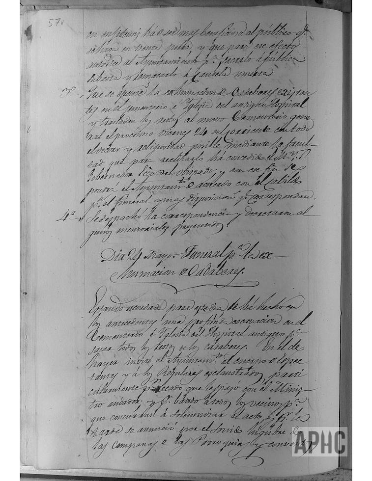 Según se había acordado por el Ayuntamiento, este día se celebraron el funeral y ceremonias de la exhumación de los restos del cementerio e iglesia del antiguo Hospital y su traslado al nuevo Cementerio general. Asisten al acto el Ayuntamiento, la Capilla de Música, el Cabildo Eclesiástico, religiosos conventuales y un gran número de vecinos.