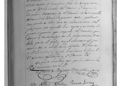 Se desea dejar constancia en esta cata del acuerdo realizado entre el Ayuntamiento y los señores Benito y Luis Bissié, respecto a al terreno que se les expropia en el término de El Montecillo, para la nueva carretera, cediendo el Ayuntamiento en compensación la parte o porción que ocupaba el Camino que dirige a Cintruénigo, con la plantación de árboles que todavía quedan, alindando por Cierzo con el albal de los referidos Benito y Luis Bissié, y por al bochorno a viña de D. Antero Miñano y D. Fermín Gil.