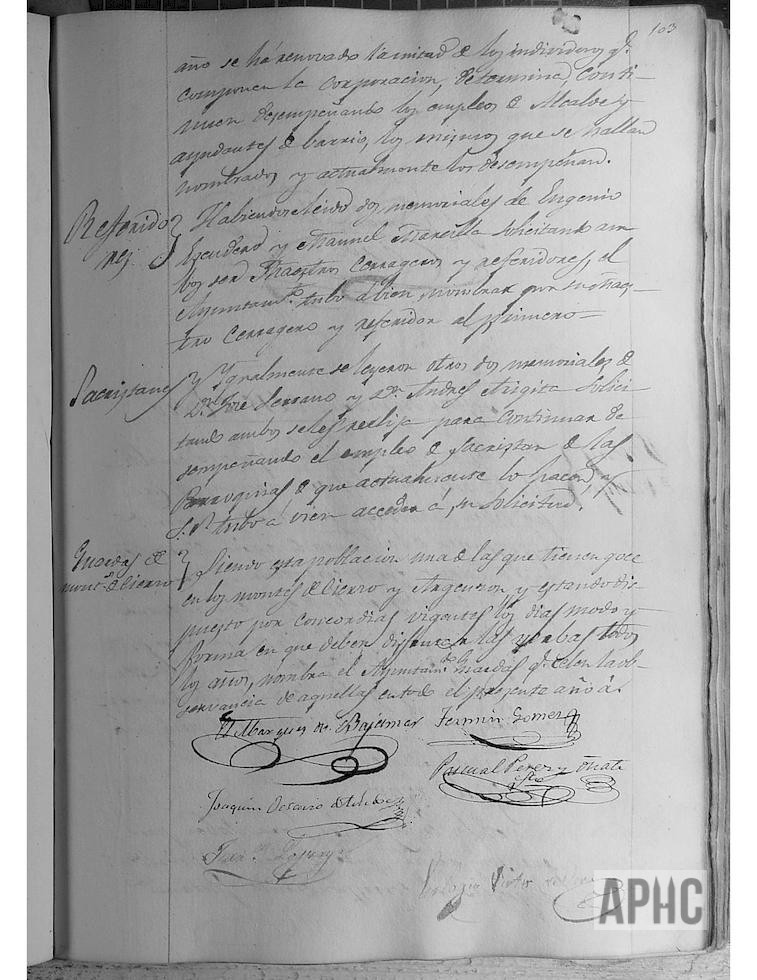 Nombramiento de Alguaciles, se reelige a los actuales Miguel Salcedo y Julián López. Se dispone continúen desempeñando los empleos de Alcaldes y Ayudantes de barrio, los personas que habían sido designadas anteriormente. Continua Eugenio Escudero como Referidor y Manuel Marcilla como maestro Cerrajero. También se mantiene a los Sacristanes José Serrano y Andrés Arigita. Se confirma en su empleo a los Guardas de Montes de Cierzo.
