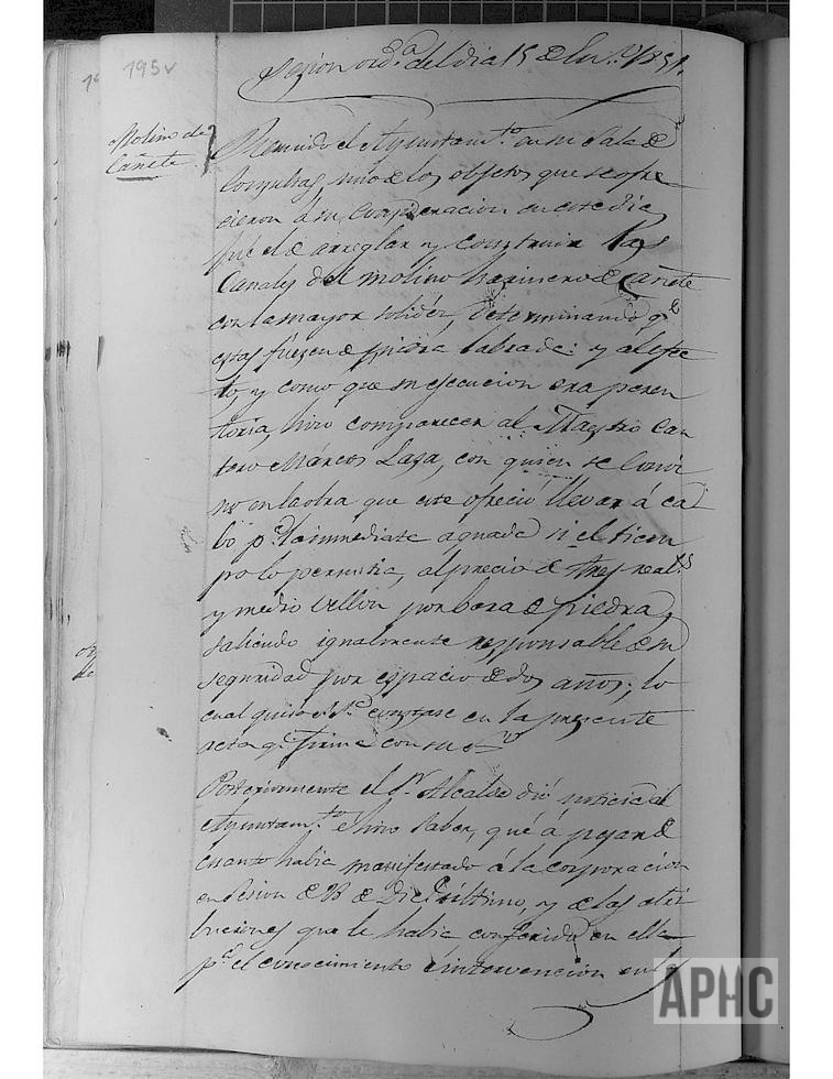 Se acuerda el arreglo de los canales del Molino harinero de Cañete, con piedra labrada que realizará el Maestro Cantero Marcos Lasa.