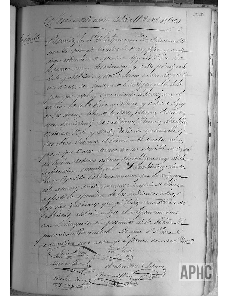 1854-10-11 – (Falta la página 302 vuelta, que figura al final de este libro y se refiere a sesión de fecha 31-10-1854, en que se trata sobre la formación de una Milicia).