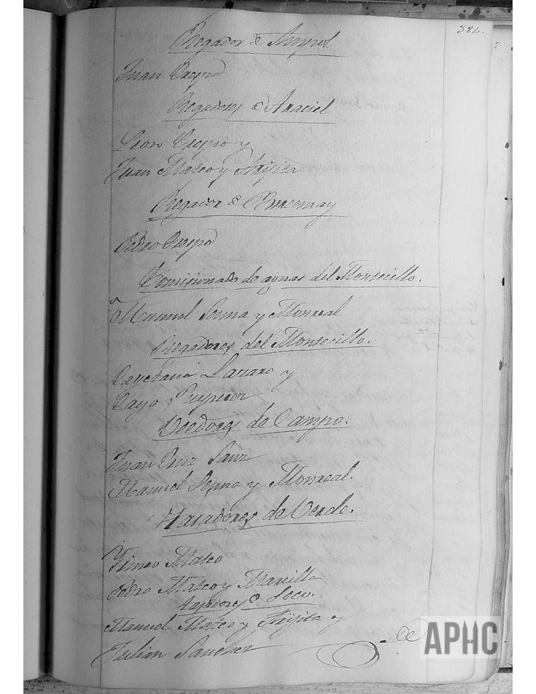Se realizó el nombramiento de Alcalde de Aguas a Pablo Mateo; Alamines a Gregorio Benito, Miguel Galarreta, Manuel Navarro y Juan Liroz; Regadores de Cañete, Eusebio Navarro, Antonio Ochoa, Pedro Vallés y Crispín Estañán; de Ampol, Juan Crespo; de Araciel, León Crespo y Juan Mateo Arigita; de Burcemay, Pedro Crespo; del Montecillo, Cayetano Lázaro y Cayo Rupérez. Veedores de Campo a Juan Cruz Sanz y Manuel Sesma Monreal; Tasadores de lo Verde a Irineo Mateo y Pedro Mateo Marcilla; de lo Seco a Manuel Mateo Arigita y Julián Sánchez.