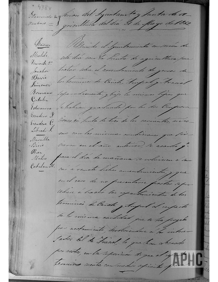 Reunidos Ayuntamiento y Junta de Agricultura, se acordó sacar a remate el arrendamiento de hierbas de Cañete, Ampol y Araciel, en las mismas condiciones en que estaban anteriormente.
