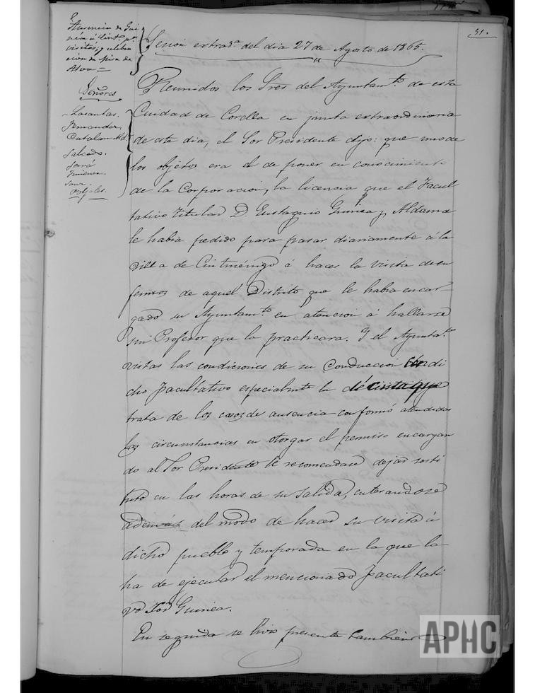 1865-08-27 – (Permiso Médico. Misa de Alba).