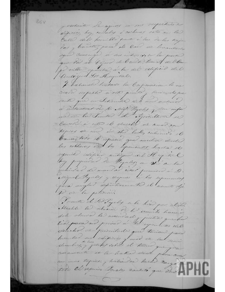 Se accede a petición de Ruperto Sanz y Lorenzo Catalán, sobre servidumbre de luces y vertiente de aguas, en cocheras de la calle Hornillo, frente a la de Tajadas y Cañete, junto a edificio del antiguo Hospital, en el cajero del río Cañete, en el ramal del Campo, abonando a Sr. Poyales cierta cantidad.