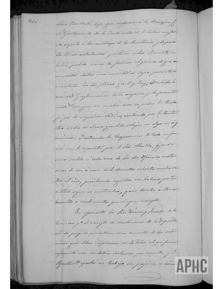 Ante la escasez de fondos municipales, y por lo tratado en sesión, se acordó fijar el sueldo de cada uno de los dos Oficiales de Secretaría, en 4 onzas de oro, o sea 1.280 reales vellón al año, percibiendo sus haberes por trimestres, según se acostumbra y sin derecho a ninguna otra precepción por ningún concepto. Previa solicitud para el cargo, se nombró Guardas de Montes de Cierzo y Argenzón a Mónico Crespo, Santiago Murga, Manuel Jiménez Sanz, Santiago Arellano, Saturio Delgado y José Monreal Guillorme. Atendiendo comunicación de la Junta de Agricultura, se realizó el nombramiento de Alcalde de Aguas, Alamines y Regadores para los distintos términos.