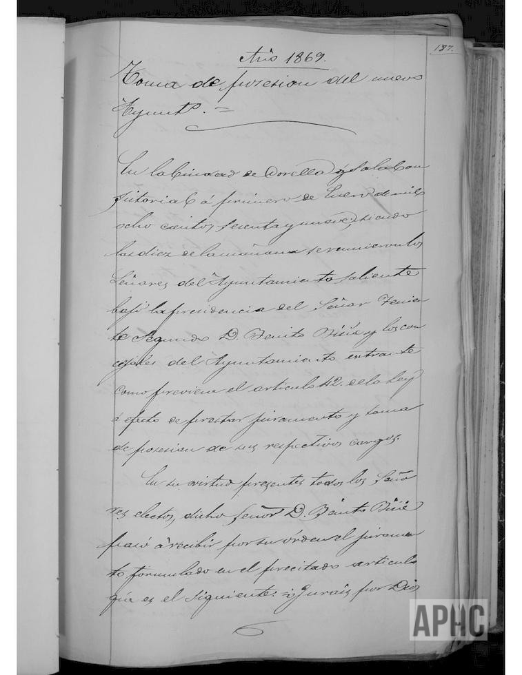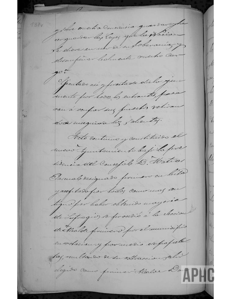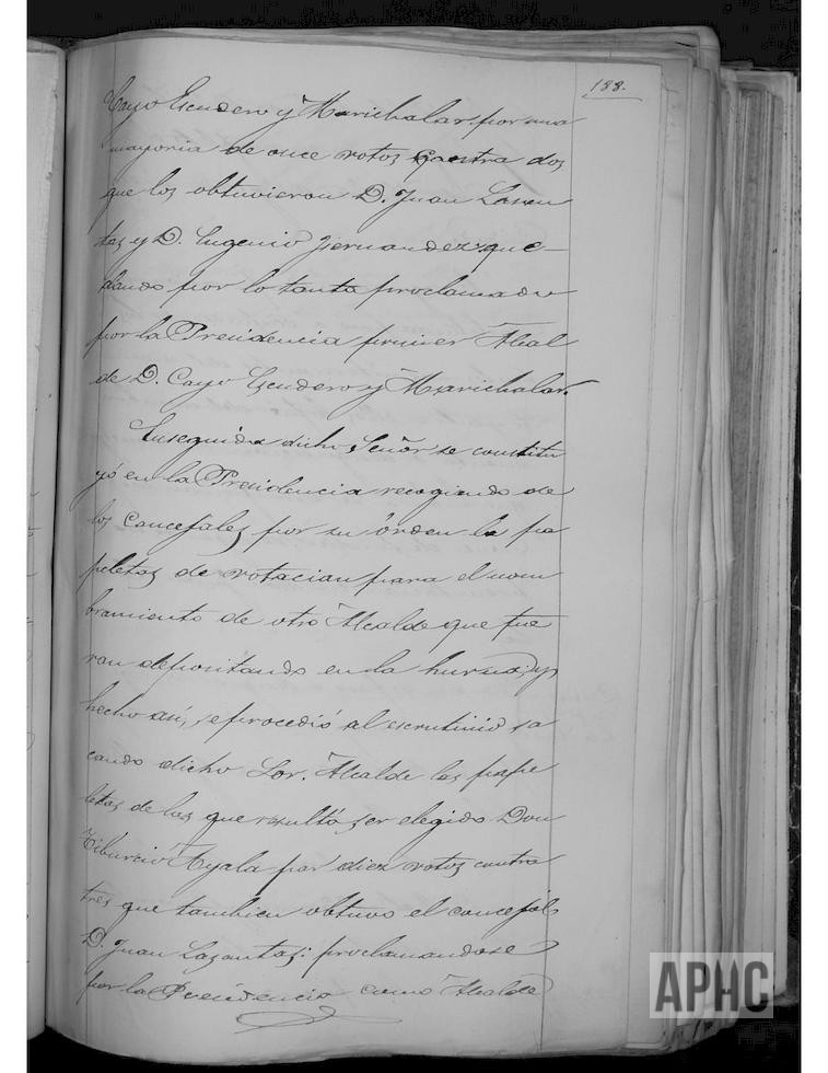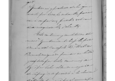 Se reunieron los señores del Ayuntamiento saliente y los Concejales del entrante y realizadas las oportunas votaciones, quedó constituido el Ayuntamiento de la siguiente manera; Alcalde, Matías Pascual; 1º Tte. Cayo Escudero Marichalar; 2º Tte. Tiburcio Ayala. (No se citan los nombres de los Concejales que forman el nuevo Ayuntamiento, de las firmas del acta se lee: Tiburcio Ayala, Dionisio Viscasillas, Juan Lasantas, Matías Catalán Munárriz, Claudio Ormazábal, Eugenio Fernández, Manuel Francés, Dionisio Gómez, Isidoro Salamero y Longinos Librada). Se nombran vocales para las Juntas de Agricultura, Catastro, Escuelas, Contabilidad, Alumbrado, Repeso y Arbolado. Las sesiones de celebrarán miércoles y sábados a las 6 de la tarde y en verano los mismos días a las 10 de la mañana. Se acuerda que el número de Alguaciles serán dos únicamente y se nombra a Juan Antonio Ruiz y Antonio Rincón.
