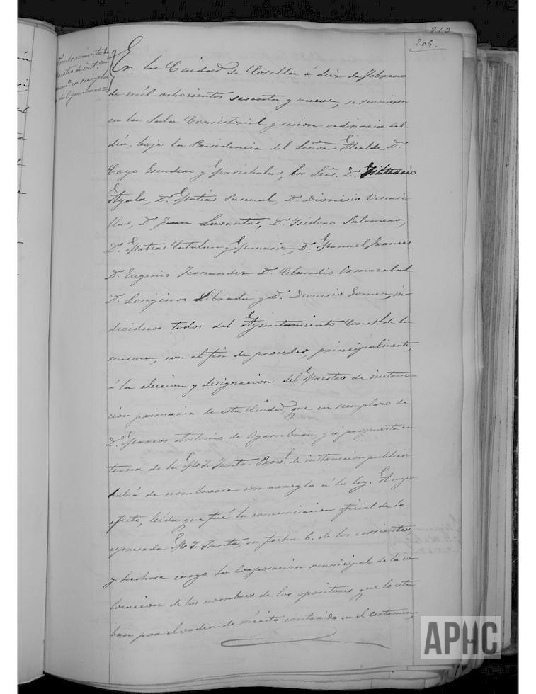 Vista la terna de nombres para adjudicación de la plaza de Maestro titular, se acordó el nombramiento para el cargo de Maestro Titular de Epifanio Azcona. En sesión de este mismo día, se informa de exposición del Alcalde del Barrio de Castejón, sobre gastos que debe atender en el desempeño de su cargo, y se acordó se le pasara por vía de indemnización de 32 escudos anuales, a contar desde Enero del presente año. (En esta sesión figura como Alcalde Cayo Escudero Marichalar, y en siguientes Tiburcio Ayala, parece que el que estaba presente actuaba como Alcalde).