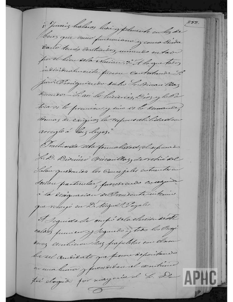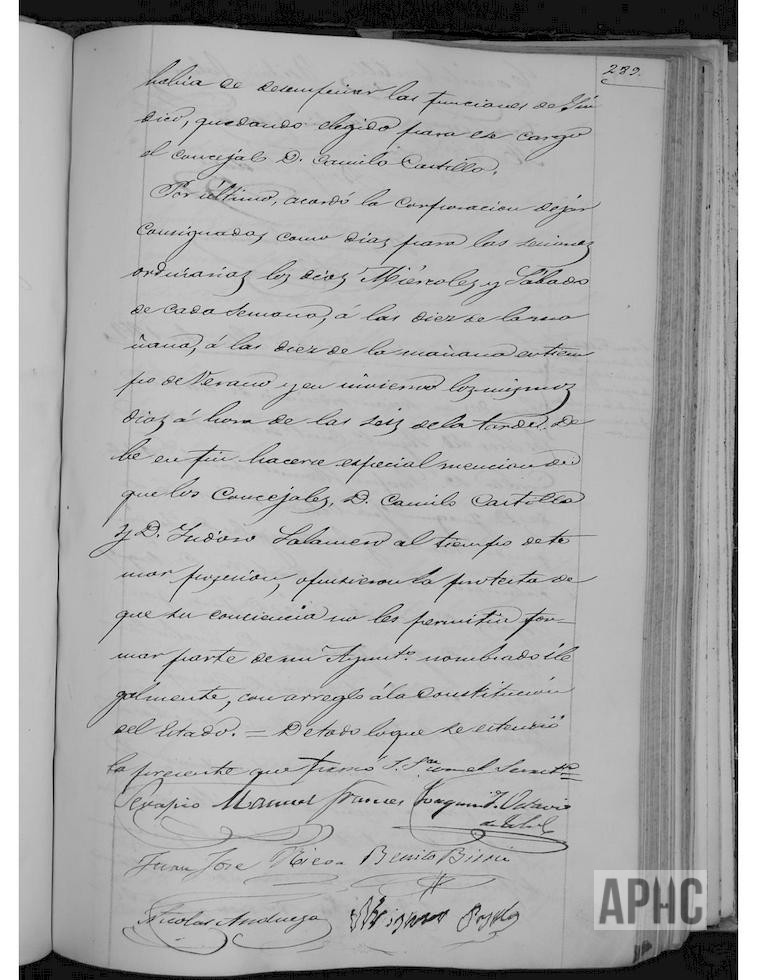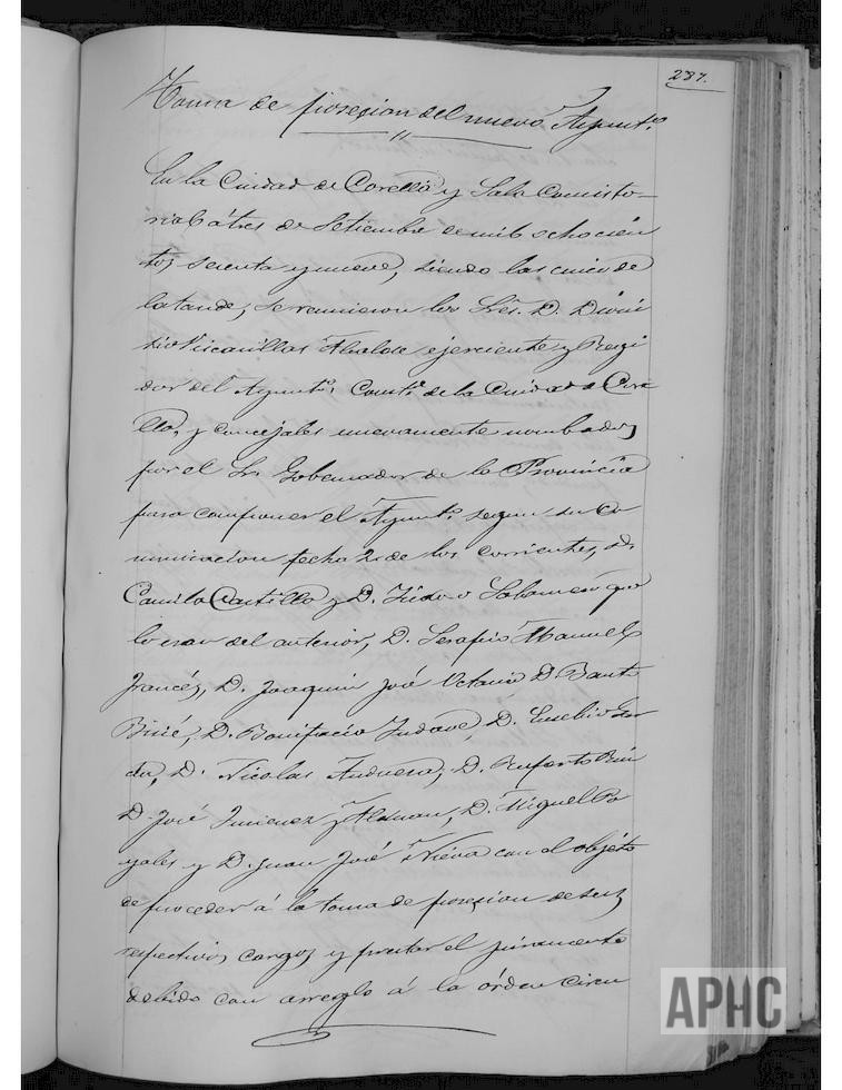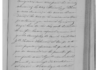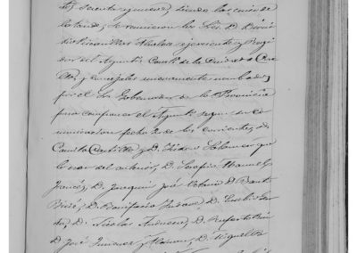Se reunieron los señores Dionisio Viscasillas, Alcalde ejerciente y los Regidores nombrados por el Sr. Gobernador para componer el Ayuntamiento, señores Camilo Castilla e Isidoro Salamero, junto con los que ya lo eran, y realizadas las elecciones correspondientes, quedó elegido Presidente interino Miguel Poyales, Alcalde 1º Serapio Manuel Francés, Alcalde 2º Joaquín José Octavio de Toledo y los Concejales Isidoro Salamero, Camilo Castilla, Benito Bisié, Juan José Nieva, José Jiménez, Eusebio García, Nicolás Andueza, Lucio Elorga, Bonifacio Indave, Ruperto Ruiz y Manuel Mª Sánchez. Se nombra Regidor Síndico a Camilo Castilla. Las sesiones ordinarios, se celebrarán los días miércoles y sábado de cada semana, a las 10 de la mañana en tiempo de verano y en invierno los mismos días, a las 6 de la tarde. Los Concejales Camilo Castilla e Isidoro Salamero, al tiempo de tomar posesión, opusieron la protesta de que su conciencia no les permitía formar parte de un Ayuntamiento nombrado ilegalmente, con arreglo a la Constitución del Estado.