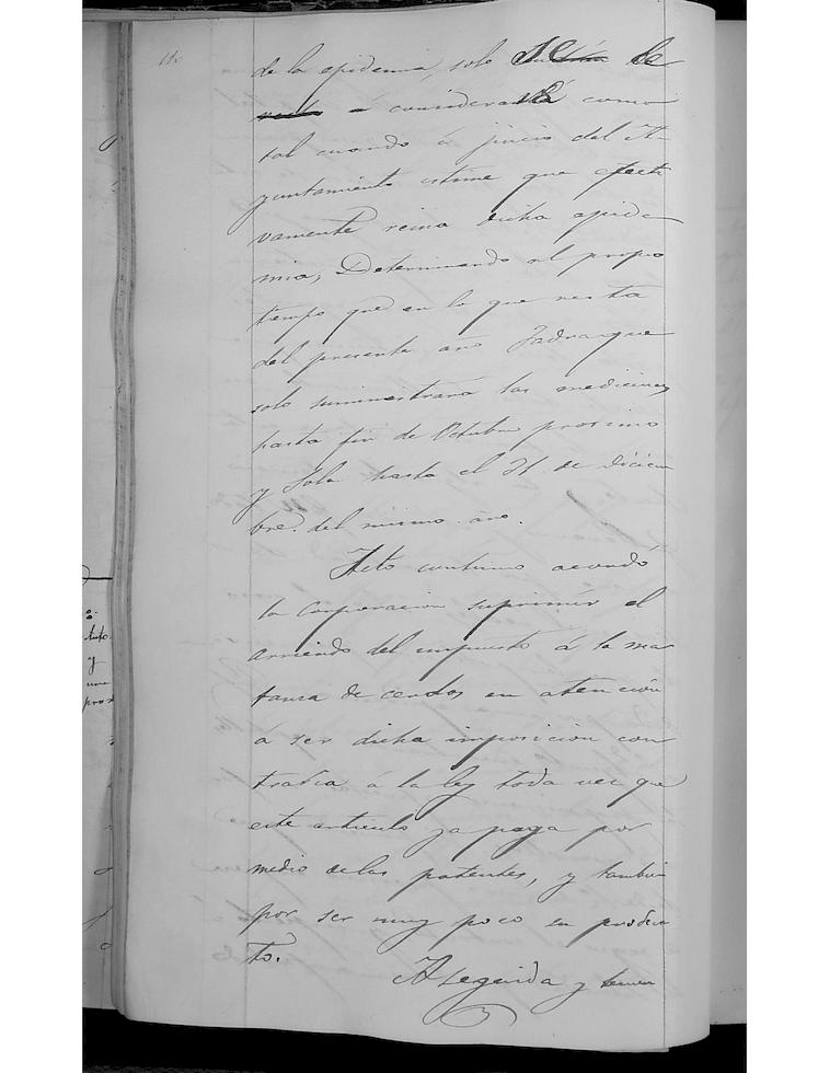 Se contrata con los Farmacéuticos Miguel Jadraque y Marcos Sola el suministro de medicamentos para el Hospital, así como para la Guardia Civil del Puesto de Corella, los Alguaciles, Nuncio o Pregonero, y Alcaide o carcelero, para todo un año, en la cantidad de 6.000 reales, salvo el caso de que la población fuera invadida por una epidemia. Se acuerda la supresión del arriendo del cobro del impuesto a la matanza de cerdos. El Ayuntamiento manifiesta que el día de ayer, había terminado la feria y determinó que “la Plaza de la Verdura volviese a su primitivo punto, o sea a la Plaza de su nombre”.(Se refiere a las actividades desarrolladas en la Plaza). Mediante un bando se instará a cumplir las ordenanzas urbanas, dejando libre y expeditas las aceras y direcciones de las calles que afluyen a dicha Plaza. Escrito del Oficial de la Secretaria del Ayuntamiento, Francisco Peralta, indicando que al haber sido elegido Secretario su compañero Antonio Sánchez de Luna, ahora se ocuparía de las dos plazas, por cuyo motivo tendría más trabajo y solicitaba un aumento a lo que el Ayuntamiento accedió.