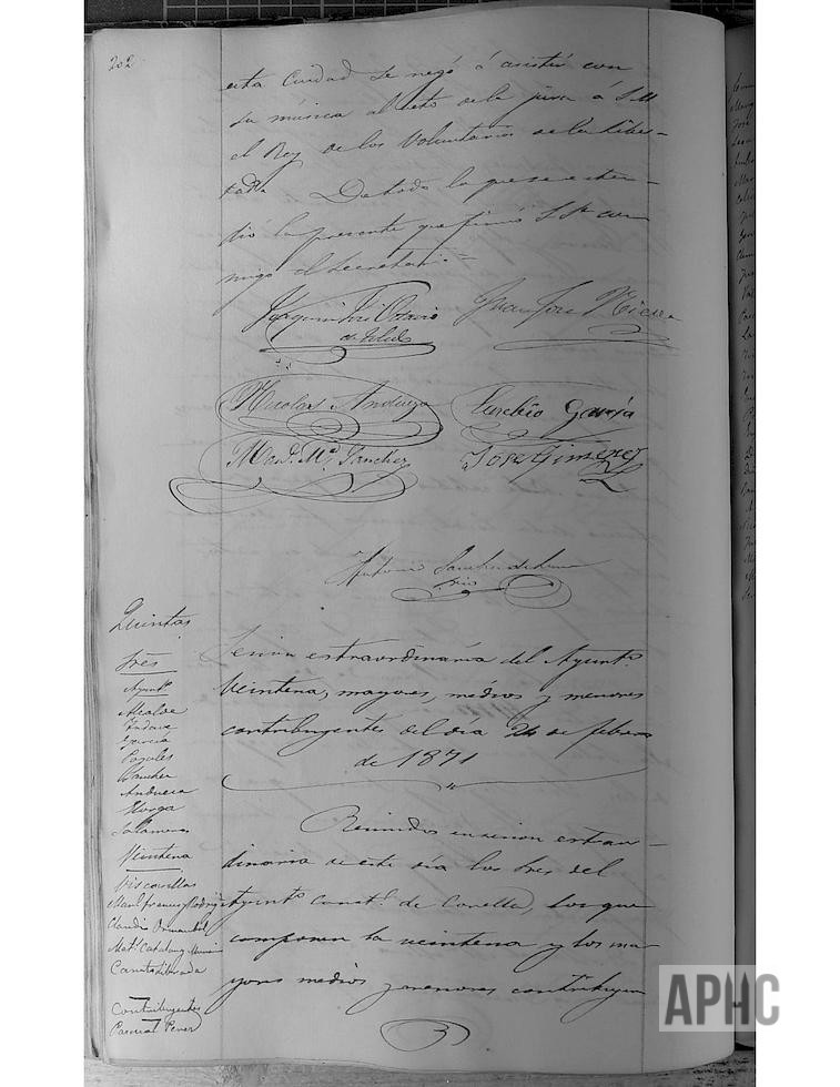 Reunidos Ayuntamiento, Junta de Veintena, Mayores, Medios y Menores Contribuyentes, se trata sobre Circular de la Diputación en cuanto a que el cupo de quintos, correspondiente a Corella se cubriese con hombres o con dinero. Se acuerda que se redimiesen los quintos y que el importe se ingresase con cargo a la riqueza Catastral e Industrial y que en caso de no poder realizarse así, fuesen hombres y que a su vuelta con la licencia absoluta, se les gratificase con cantidades de dos, tres o cuatro mil reales, satisfechos, también de los fondos expresados. Se acuerda la supresión del impuesto sobre el pan.