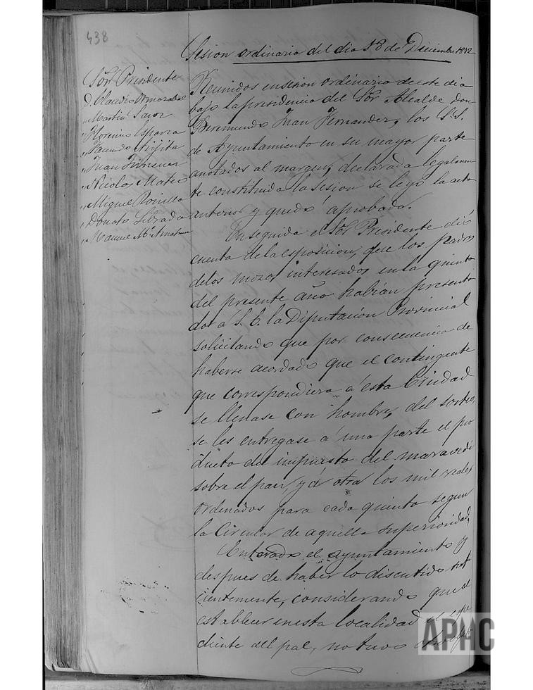 Sobre solicitud a la Diputación por parte de padres de soldados de la quinta, ya que este año el contingente se haría con hombres, de parte del impuesto sobre el pan, además de los 1.000 reales que les correspondían. El Ayuntamiento informaría a la Diputación que por su parte no había ningún problema, si así era de justicia.