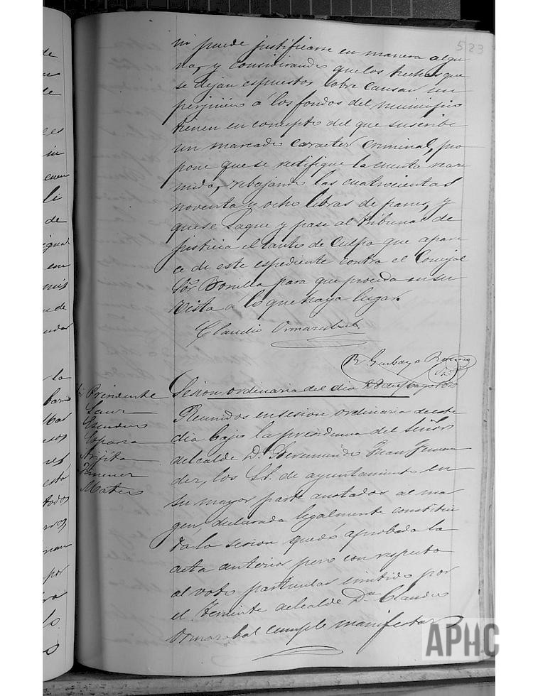 Se da lectura el voto particular anotado al final del acta de la sesión anterior, formulado por Claudio Ormazábal y sus compañeros de Corporación no entienden su proceder, ya que formó parte de la comisión que revisó las cuentas y que se formalizaron y se acordaron de conformidad. Ahora emitía un juicio peligroso que sus compañeros no compartían ni aprobaban y el sentir de la Corporación es dejar al concejal Miguel Bonilla en el lugar que legítimamente le corresponde con el resultado de la liquidación. Se acuerda anunciar el arriendo por un año, del local de la carnicería, admitiendo la postura de 800 reales. Igualmente, se acuerda el arriendo, por trimestres, del suministro de raciones de pan, carne y vino, fijándose los precios y anunciar la subasta a candela muerta, al mejor postor. Se informa de oficio del Presidente de la Junta del Hospital, solicitando la colaboración de sus individuos para el buen gobierno del establecimiento, y el Ayuntamiento, de conformidad, nombra a José Gil Pérez, Ildefonso Díaz, Miguel Gómez y Jenaro Viscasillas, notificándoles, mediante oficio, su nombramiento. Se aprueban las cuentas presentadas por el administrador de coches, respecto a la conducción del correo diario por la noche, y transporte de las raciones que se suministran al destacamento de Castejón.