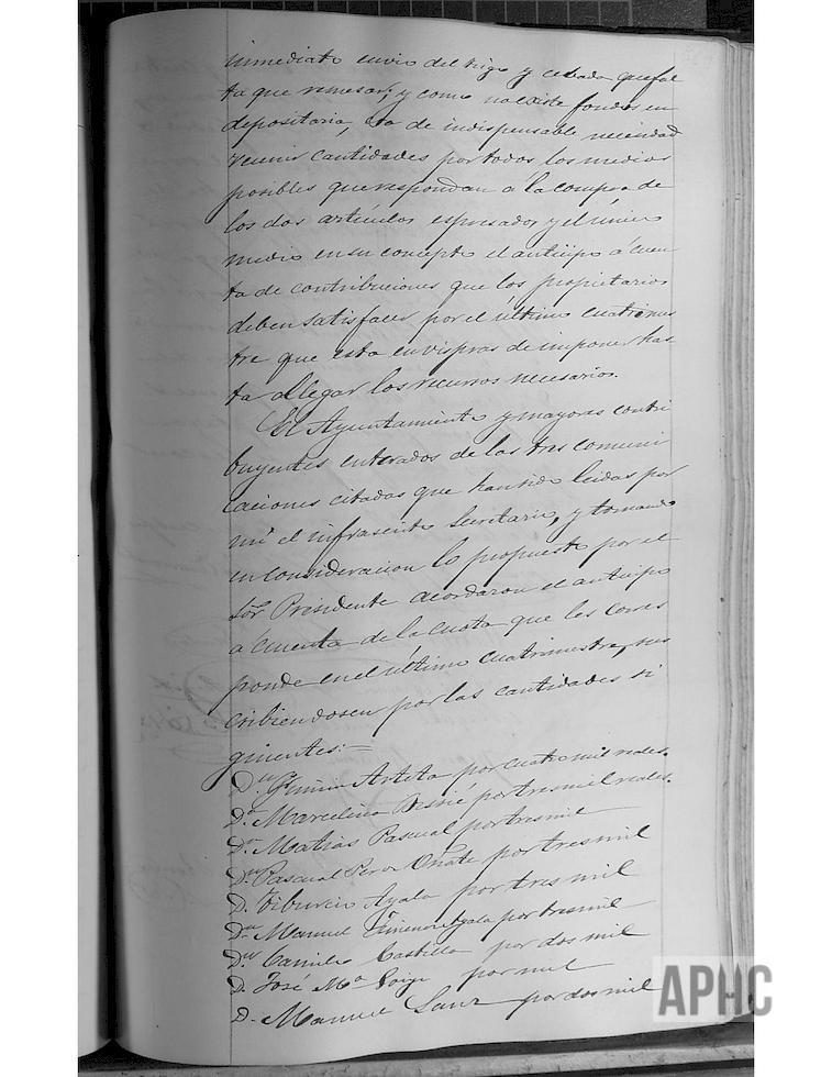 Se informa de que no se pudo realizar la entrega total de suministros solicitada a la Columna del General Santa Pau, en Tafalla, quedando aplazada, por plazo de 8 días la entrega de trigo y cebada y que sin haber finalizado dicho plazo, se habían recibido oficios de varios Organismos, apremiando dicha entrega. Al no disponer el Ayuntamiento de fondos, se convoca a los mayores contribuyentes y debatido el tema, se acuerda que los parte de los mayores contribuyentes se realice un pago anticipado a cuenta del pago de contribución del último cuatrimestre, adelantando las siguientes cantidades: Fermín Arteta, 4.000 reales; Marcelina Bissié, 3.000; Matías Pascual, 3.000; Pascual Pérez Oñate, 3.000; Tiburcio Ayala, 3.000; Manuel Jiménez Ayala, 3.000; Camilo Castilla, 2.000; Manuel Sanz, 2.000; José Mª Goñi, 1.000, sumando un importe de 24.000 reales, cantidad que se considera suficiente para realizar la compra precisaba. Se comisiona al Alcalde Beremundo Juan Fernández, acompañado de Manuel Echevarne, que aceptaron la encomienda, para comprar el trigo y cebada correspondiente y entregarlos en Tafalla.