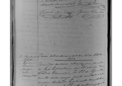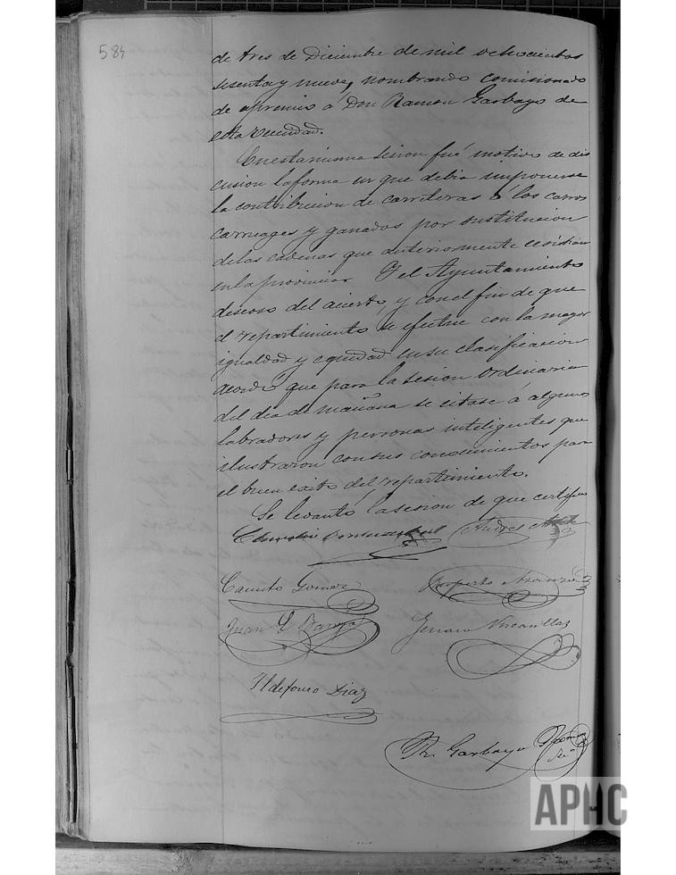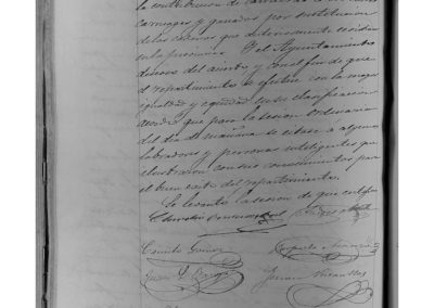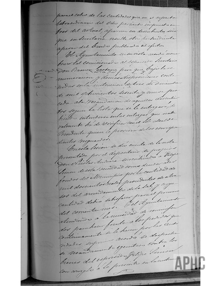 Solicitud del Secretario Ramón Garbayo, para ser nombrado comisionado para realizar el cobro de los descubiertos del impuesto extraordinario del 8% y no habiéndose presentado nadie a este cargo, se nombra a dicho Secretario.El Depositario de Propios, Nicolás Andueza, presenta nota sobre deudas a los fondos municipales de Felipe Simón, por atrasos provenientes del arrendamiento del impuesto de la sal y cuya cantidad debió satisfacer para el primero del mes actual. Ante la situación de precariedad en la que se encuentra este Ayuntamiento, se acuerda realizar un mandamiento ejecutivo contra los bienes de Felipe Simón, nombrando comisionado de apremio a Ramón Garbayo. Se trata sobre la forma en que debe realizarse el repartimiento para cobro de la contribución de carreteras a los carros, carruajes y ganados, por sustitución de las cadenas y que asciende a la cantidad de 27.074 reales. El Ayuntamiento para realizar este repartimiento con la mayor igualdad y equidad en su clasificación, acuerda que para la sesión de mañana, se citase a algunos labradores y personas inteligentes que ilustrasen con sus conocimientos, para el buen éxito de dicho reparto. Por parte de los labradores convocados, sólo acudieron Camilo Castilla, Martín Sanz y Leonardo Catalán.